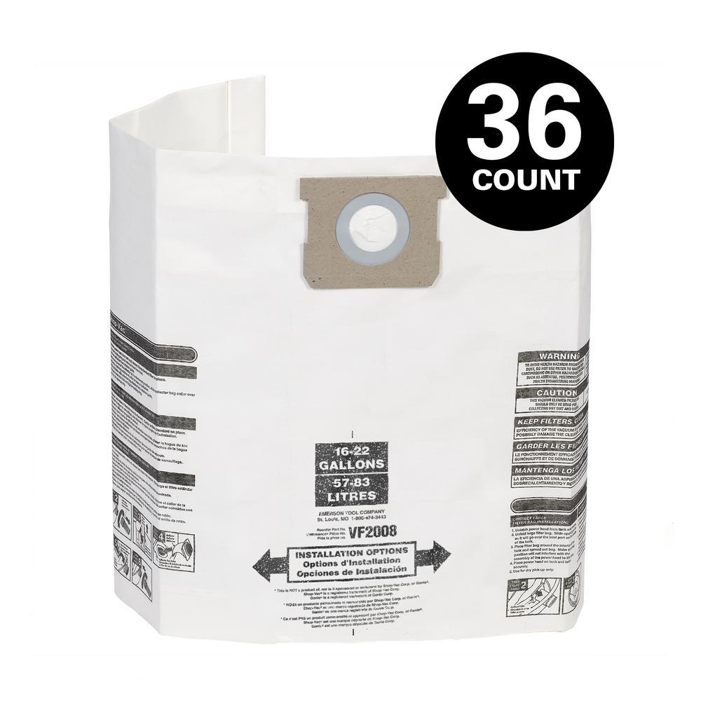 Multi-Fit Replacement Dust Bags are designed for use with most Shop-Vac and Genie wet dry vacs between 15 Gal. and 22 Gal. This includes 3 replacement dust bags for capturing drywall, sawdust and general debris pickup. Dust bags provide extra-filtration and debris containment for easy, tidy and convenient disposal.
