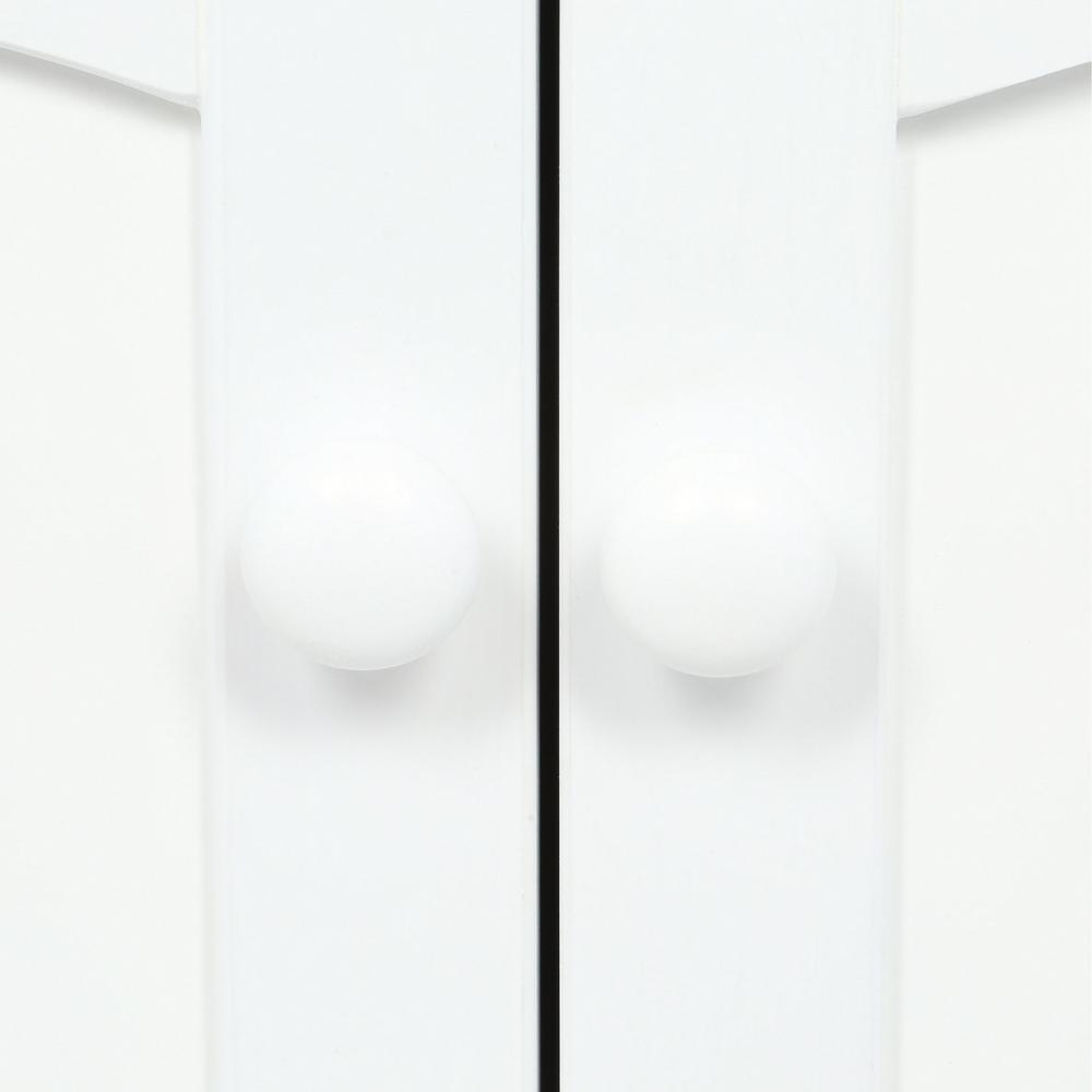 Use the Catskill Craftsmen Wood White Linen Cabinet to help brighten your decor. This versatile cabinet features durable wood construction and has Wainscoting cabinet door panels to help provide an elegant appearance for your space. This 2-door cabinet comes ready to assemble for easy installation and has a freestanding design for easy placement. The 3 shelves provide ample space to accommodate your belongings and the white color matches many home interiors.