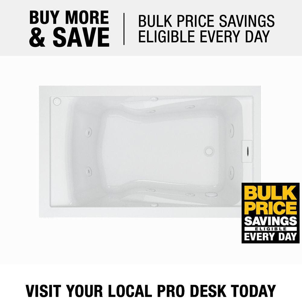 EverClean Reversible Drain 60 in. Acrylic Rectangular Drop-in 8-Jet Whirlpool Bathtub in White