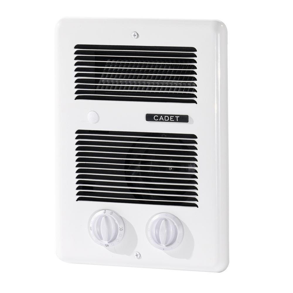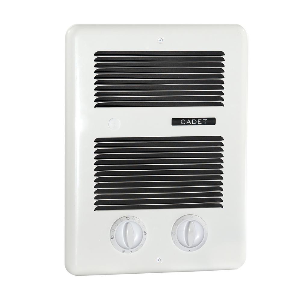 The Cadet Com-Pak 10 in. x 12.6 in. 1,000-Watt In-Wall Fan-Forced Bathroom Heater has a built-in thermostat and 60-minute timer, ideal for adding supplemental heat to make your bathroom cozy in the morning. It offers a safe alternative to space heaters, with no cords to trip over, and also features primary and secondary thermal safeguards a high temperature safety shutoff for worry-free operation.