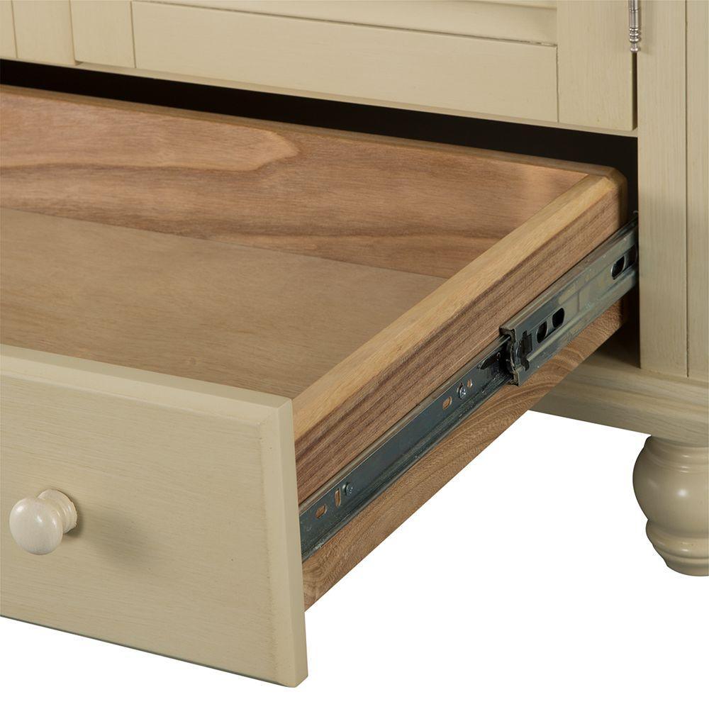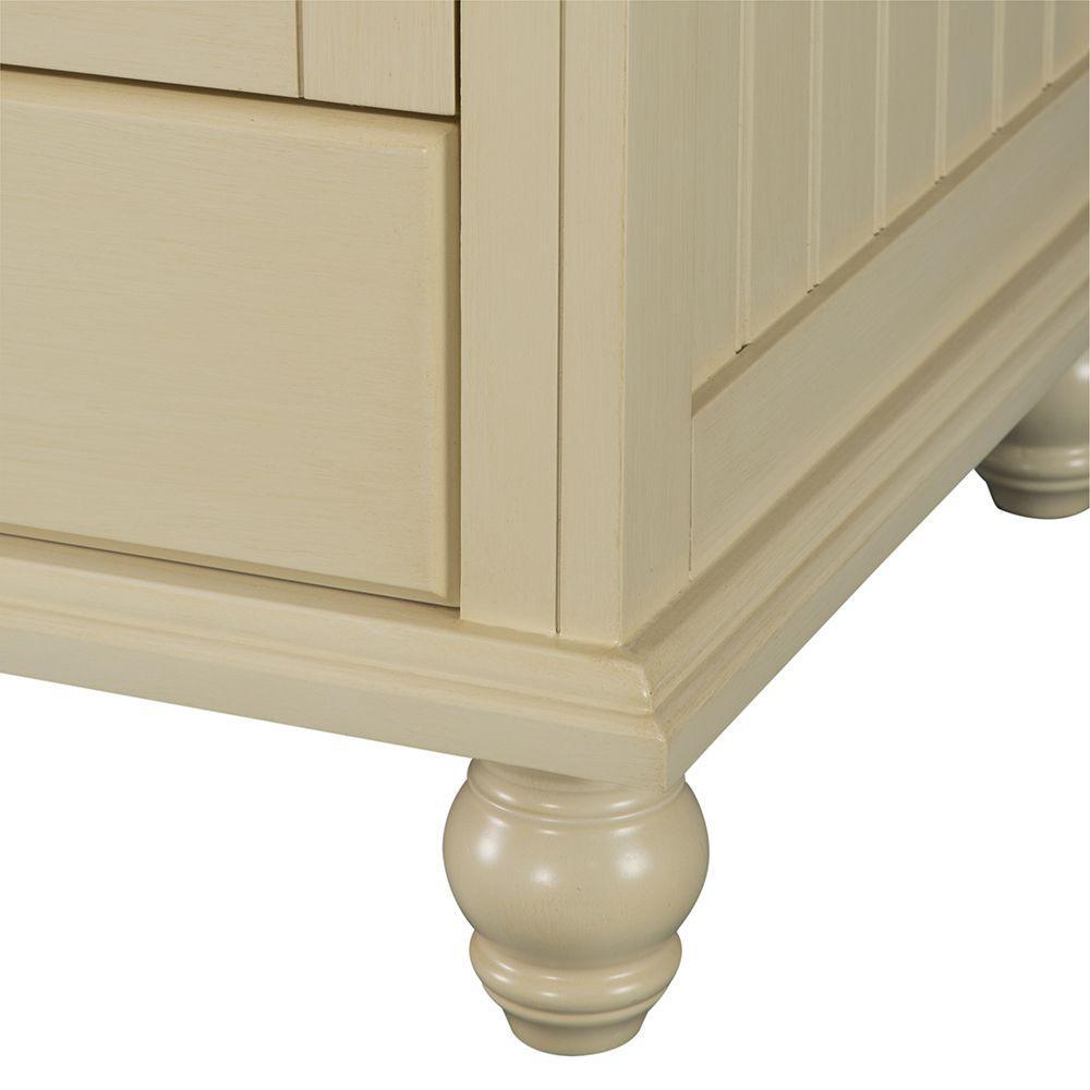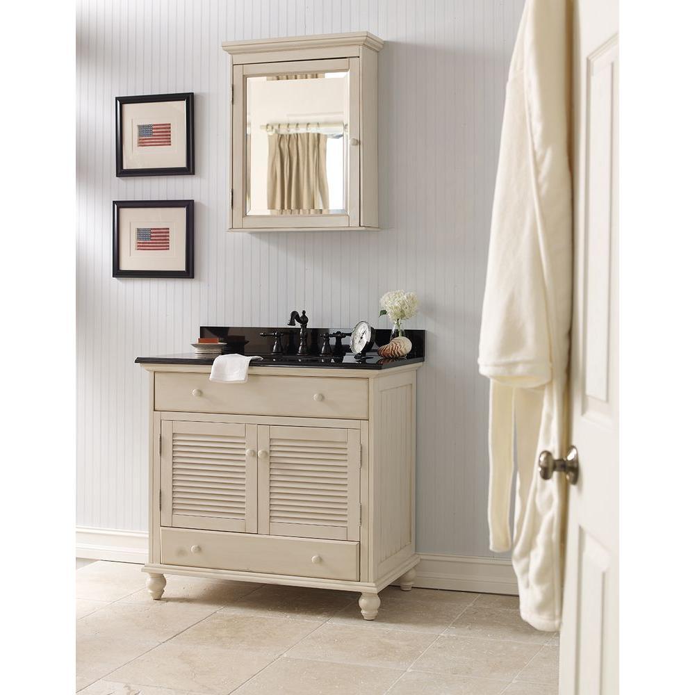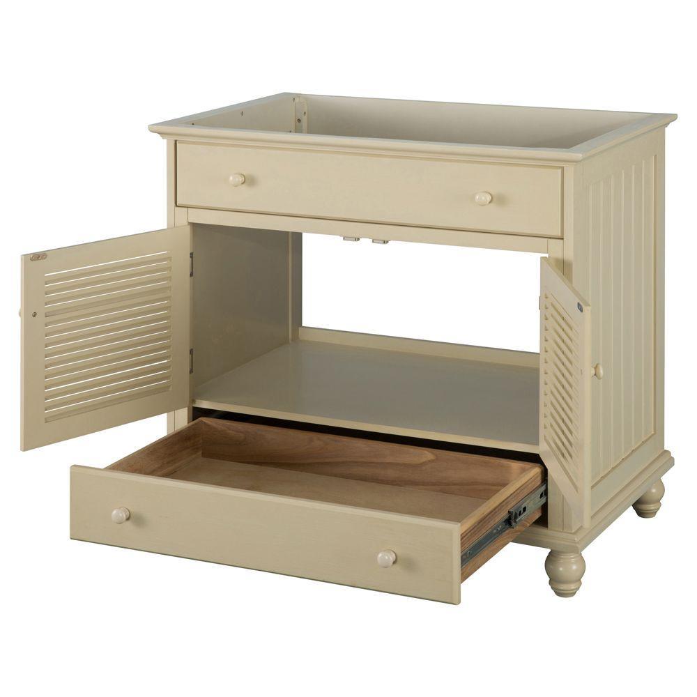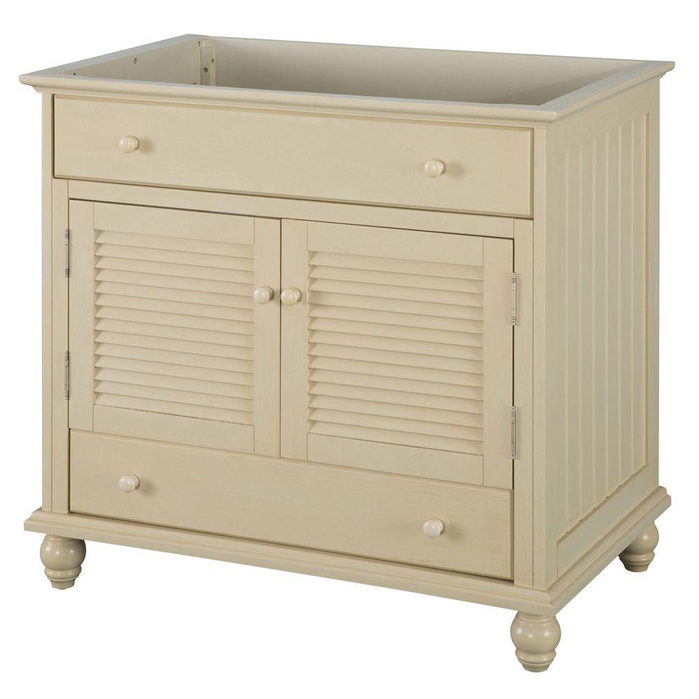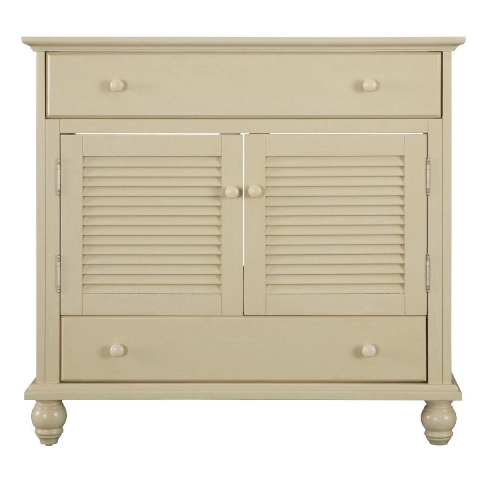 With beadboard-style side panels and louvered double doors, this vanity cabinet will give your bathroom the look and feel of a rustic cottage. The antique white finish on this piece evokes cleanliness and calmness, bringing a sense of tranquility to your home. At 36 in. W, this vanity is an ideal size for most powder rooms and bathrooms. A fully extending bottom drawer adds to the ample storage space you'll find behind the two cabinet doors above. Explore the Foremost Cottage collection for wall/floor/medicine cabinets and wall mirrors in the same style.