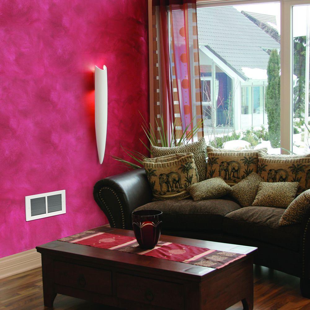 • In-wall, fan-forced electric heater resembles a central-system register vent