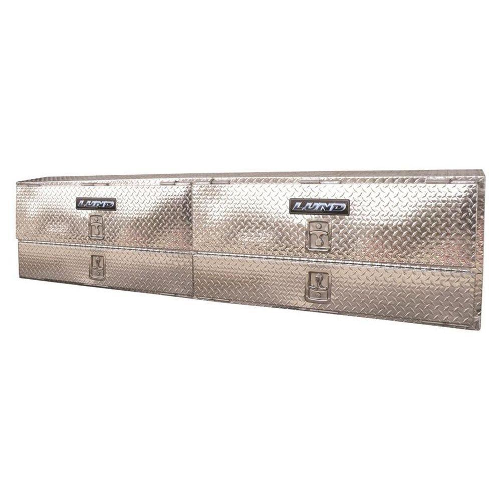 Lund 90 in Diamond Plate Aluminum Full Size Top Mount Truck Tool Box with mounting hardware and keys included, Silver