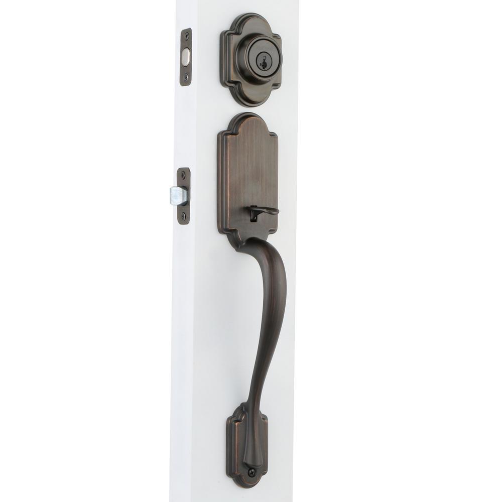 Step up to designer styles and superior security with Kwikset signature series products. The detailed styling of the Arlington is a welcome enhancement to your entry doors. Tustin's fashionable wave silhouette design is the perfect complement to homes with inspired style. The Venetian Bronze finish is hand-rubbed to reveal unique bronze highlights and provides a rich and warm complement to the product's style. The single cylinder handle set can be locked or unlocked by a key on the outside, or the turn button on the inside. SmartKey Security Re-key Technology allows you to control who has access to your home. Re-key the lock yourself in seconds in 3 easy steps. Have you recently moved or had a child lose a key. It's time to re-key. SmartKey Security provides the highest level of residential security and features BumpGuard to protect against lock bumping.