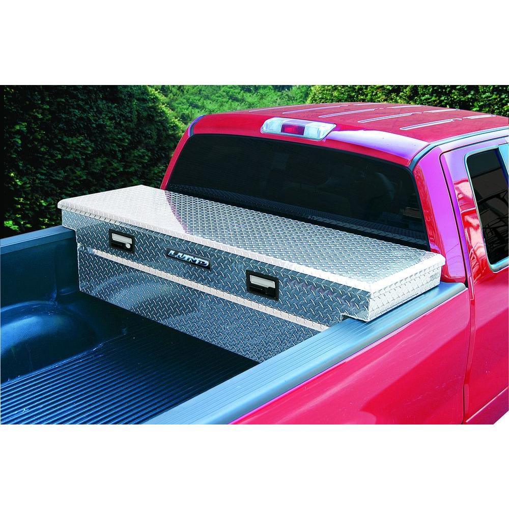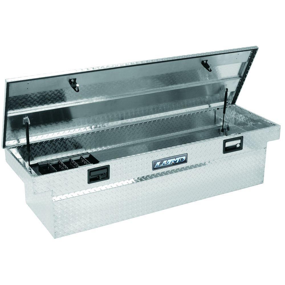 Lund 63 in Diamond Plate Aluminum Full Size Crossbed Truck Tool Box with mounting hardware and keys included, Silver