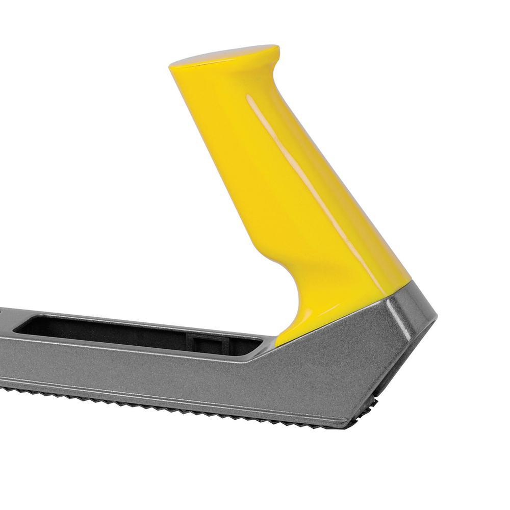 The Stanley 10 in. Surform Plane has precision-ground parts. It is designed for control and accuracy. It has a lightweight alloy body and a replaceable blade that's resilient enough to be used on materials that would dull a traditional bench-plane blade.