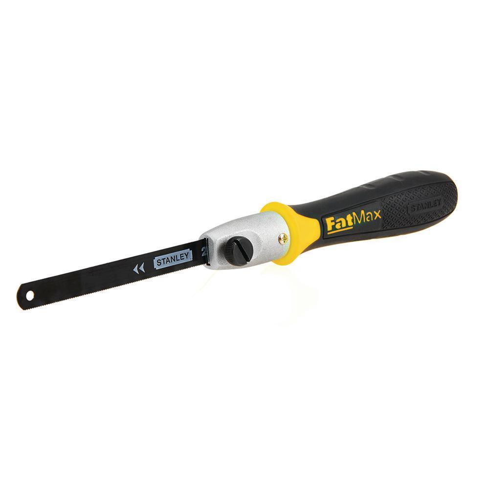 The Stanley 4-1/2 in. Multi Saw is designed for a variety of uses. It features a cushion-grip handle for comfort and has a durable tension nut that allows for easy blade changes. The saw works with any standard reciprocal and hacksaw blades and comes with both woodcutting and metal-cutting blades.