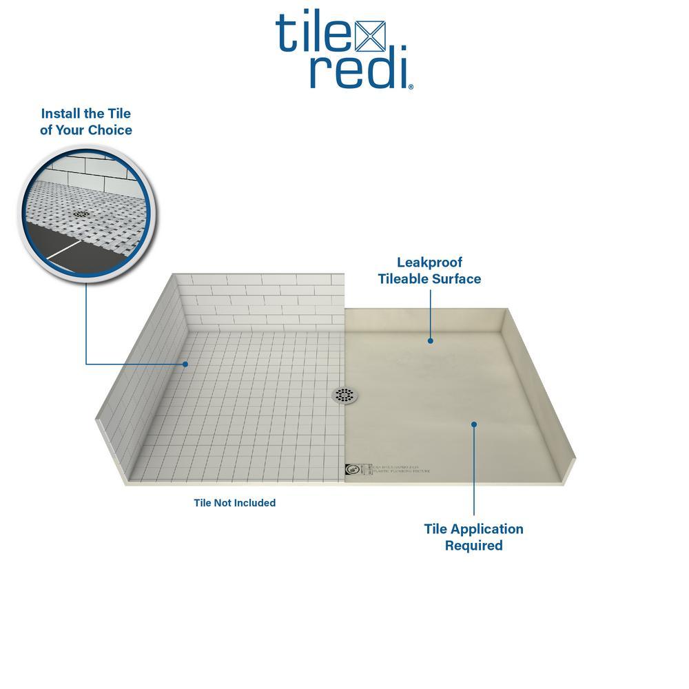 Redi Free Barrier Free shower pans by Tile Redi are available with a barrier free entrance in a variety of sizes and drain locations. All models offer the top-quality features you expect from Tile Ready brand shower pans. Tile Redi shower bases comply with all national and local plumbing codes and are UL listed.