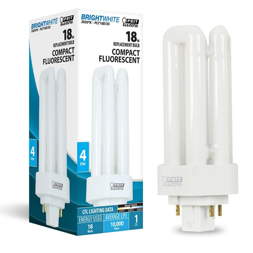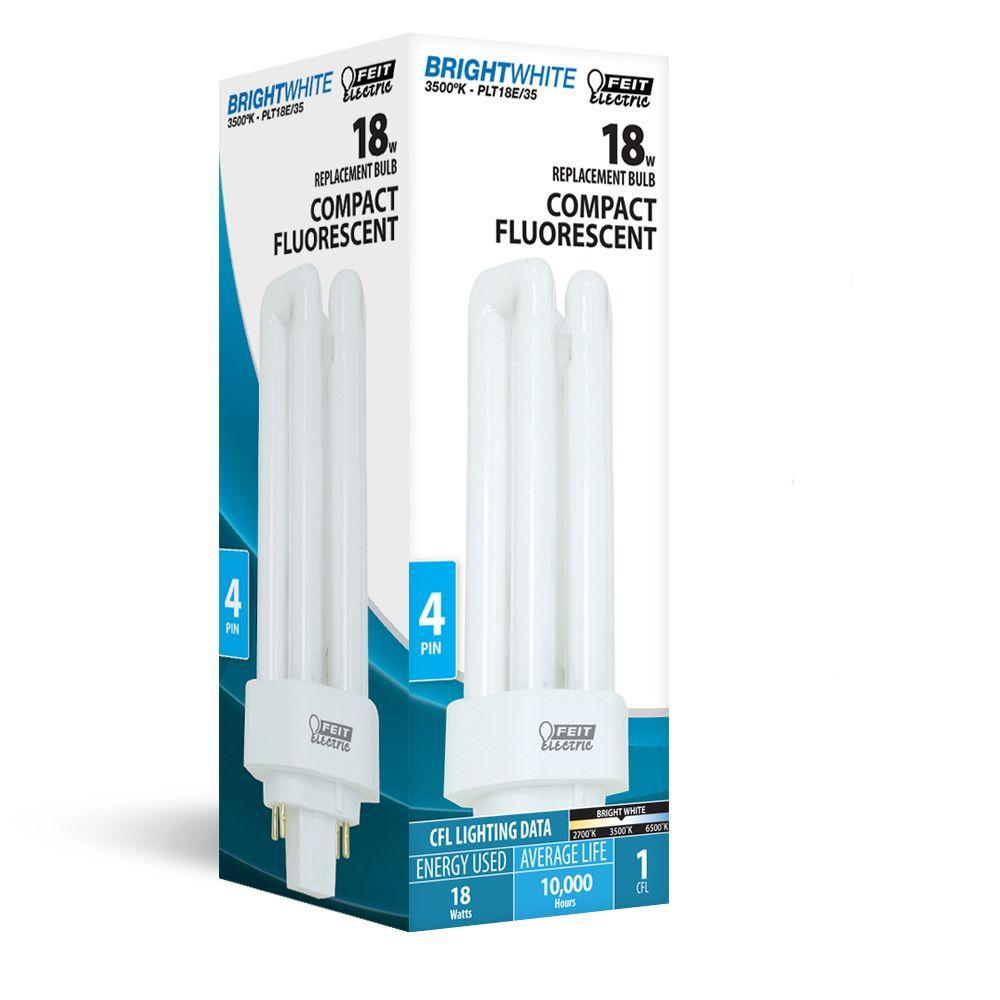 This product is a 50 pack of 18-Watt (75W) 3500K Triple Tube CFL Light Bulb. These compact fluorescent lamps have a 4-pin base. They have a color temperature of 3500 Kelvin for a bright white light.