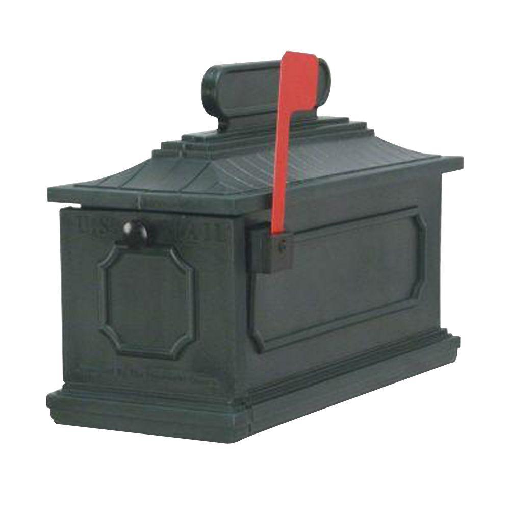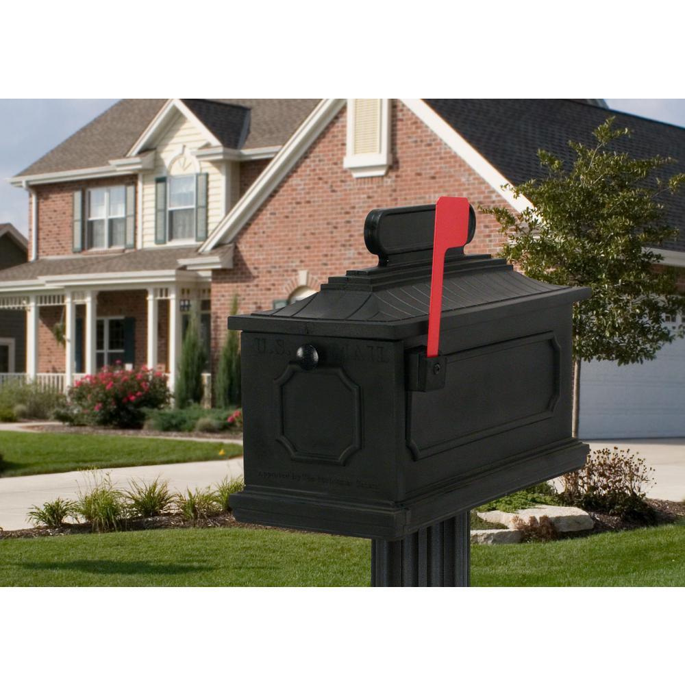 The Postal Products Unlimited 1812 Architectural Plastic Black Mailbox is an attractive, decorative mailbox featuring a large-capacity, weather-proof design for maximum leak protection. Its sturdy polyethylene construction with a UV-resistant polymer blend helps keeps the color from fading.