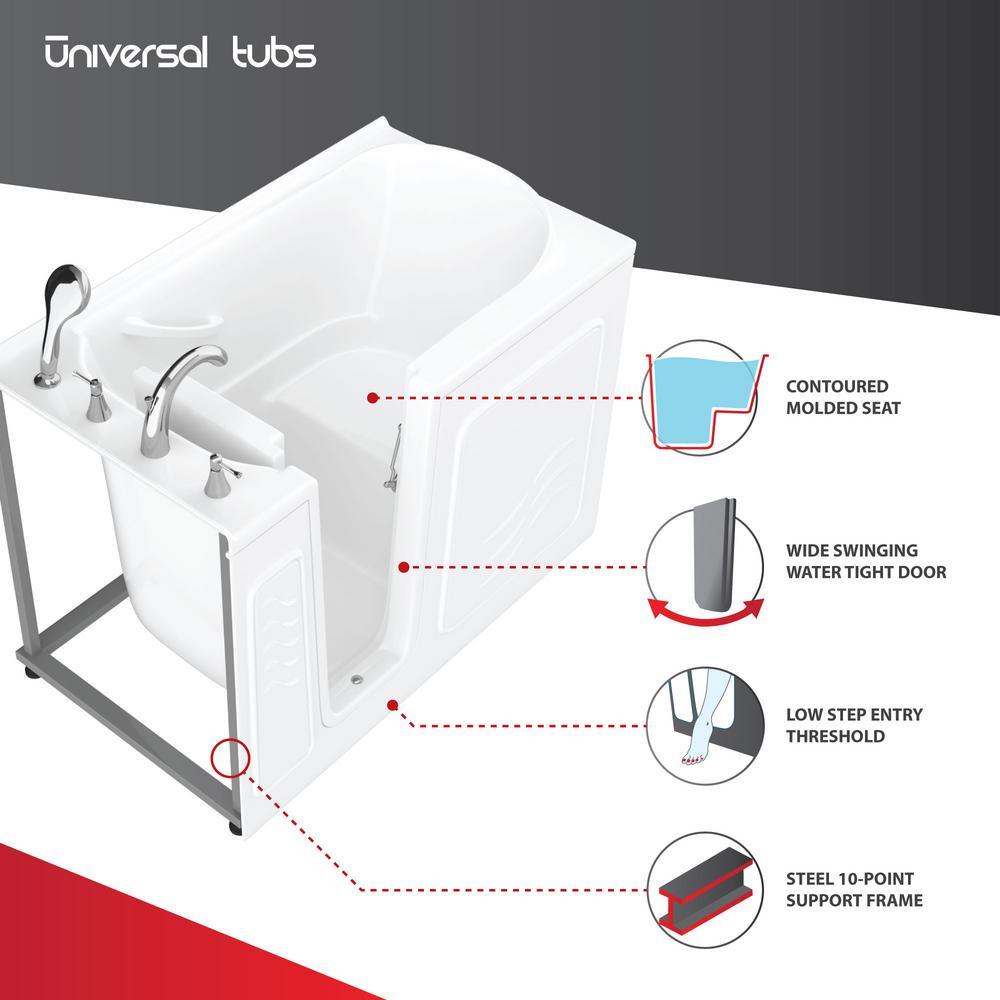 Adjustable Jet Direction,Adjustable Jet Flow,Built-In Flange,Chromotherapy,Contoured Back,Grab Bar,Jetted,Predrilled Drain Holes,Predrilled Overflow Holes,Self Leveling Base,Slip-Resistant Tub |