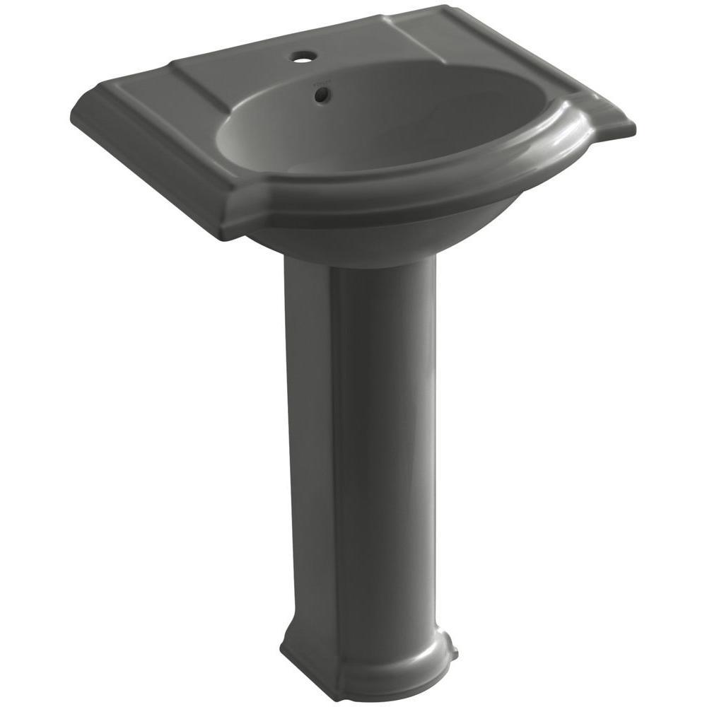 Reminiscent of a bygone era, the molded edges and subtle curves of the Devonshire pedestal sink add distinctive visual impact to your bathroom design. This sink's rich detailing imparts a sophisticated look. It comes in a variety of Kohler colors to match your bathroom decor.