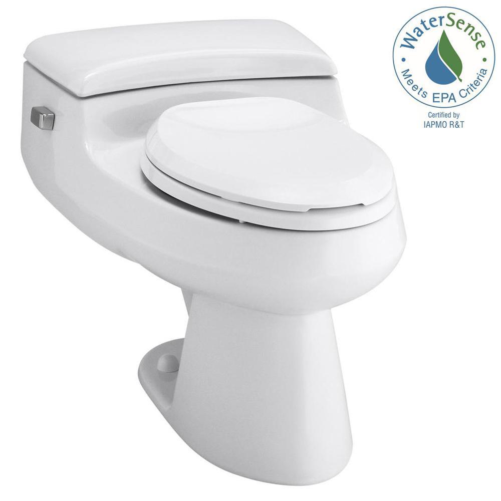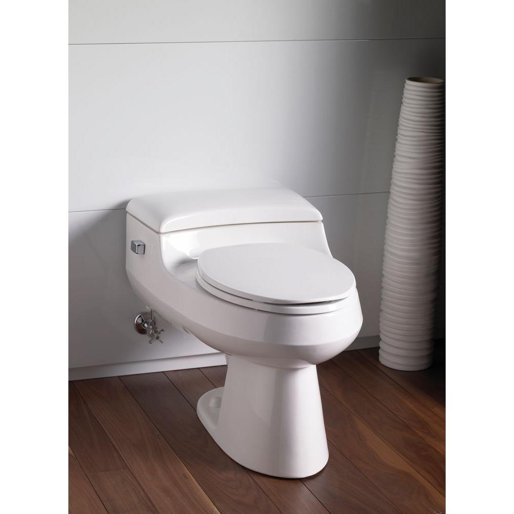 Powered by a Sloan FLUSHMATE pressure vessel, the white San Raphael 1-piece high-efficiency toilet from KOHLER supplies premium flushing power using significantly less water than standard commodes. Each 1.0 Gal. flush represents a 37.5% reduction in water use compared with ultra-low-flush 1.6 GPF toilets that have been commonly installed in bathrooms since the mid-1990s. Combining form with function, the low profile of the San Raphael conveys an elegant contemporary look that will infuse any bathroom with a modern vibe.