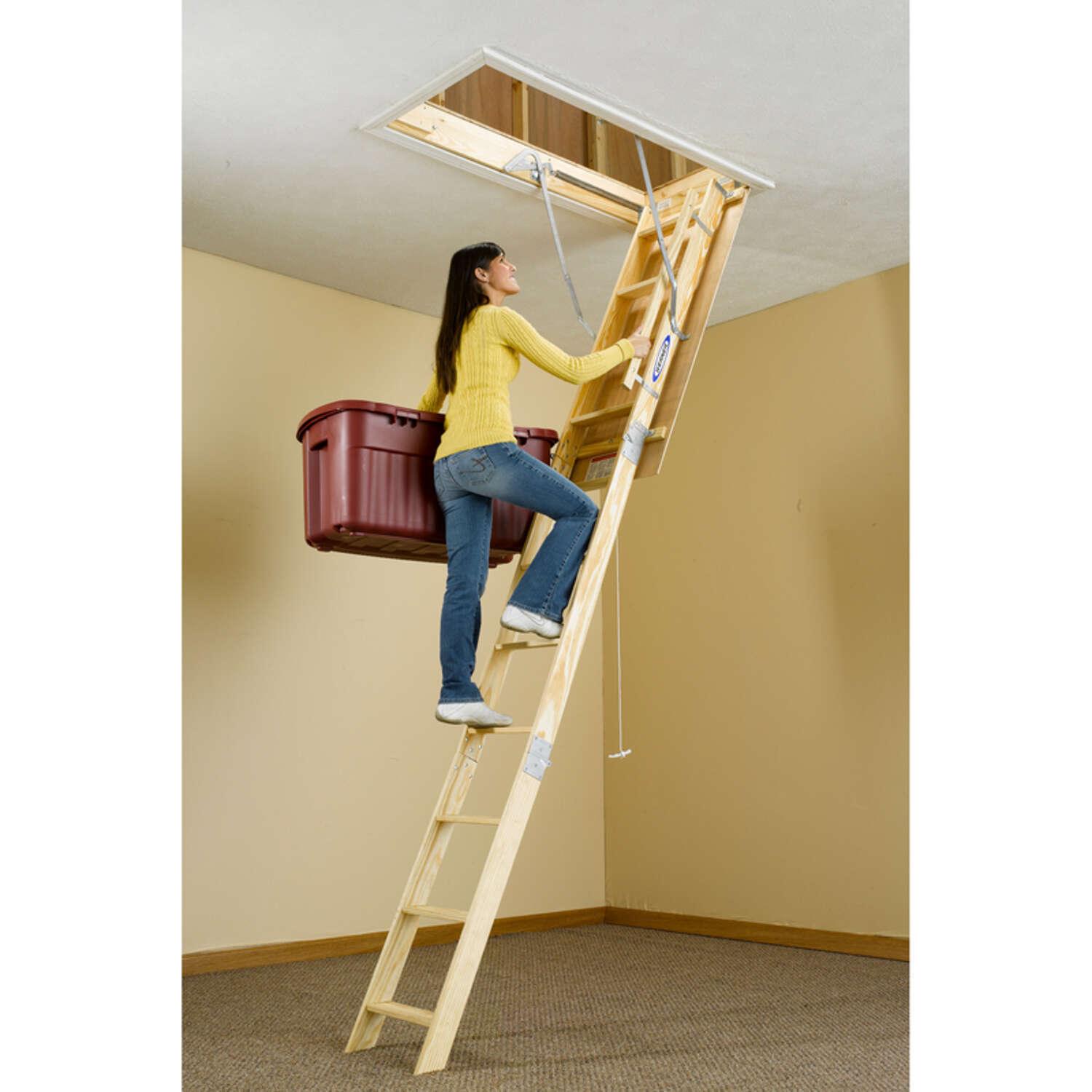 Werner W Series 7 To 8.75 ft. Ceiling 22.5 in. x 54 in. Wood Attic Ladder Type I 250 lb. capacity