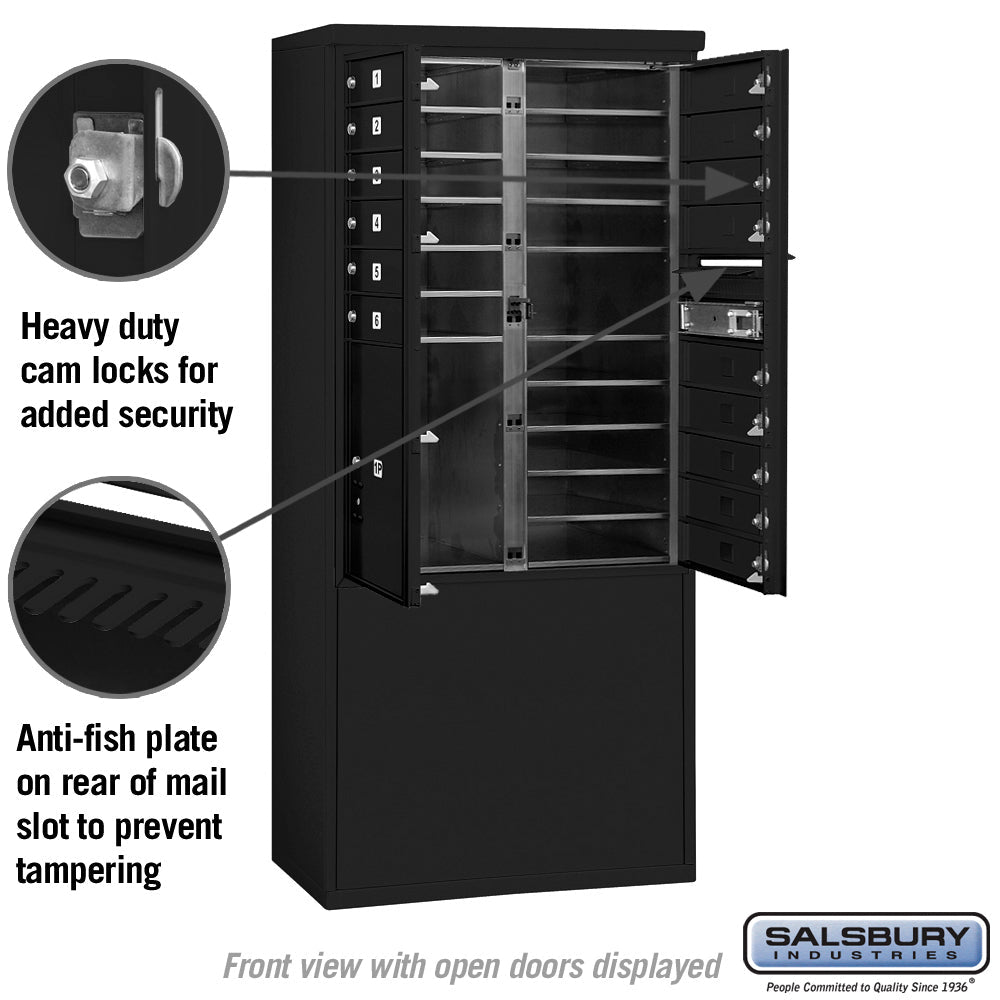 11 Door High Free-Standing 4C Horizontal Mailbox with Parcel Locker in Black
