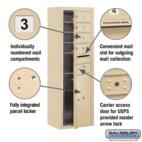 This 11 Door High Surface Mounted 4C Horizontal Mailbox in Sandstone is designed for USPS access and features a durable aluminum construction with a powder-coated finish. Ideal for apartments, commercial buildings, and residential developments, it includes a parcel locker and is ADA compliant.