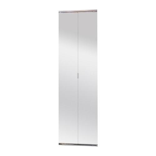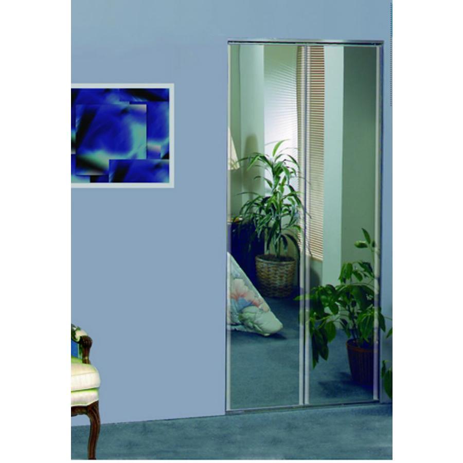 Frameless mirrored bifold door Chrome aluminum construction Category II safety backed mirror Quick and easy installation Adjustable for out-of-square openings Package includes all hardware and fasteners Provides nearly full closet access Perfect for small openings Corrosion resistant aluminum frame