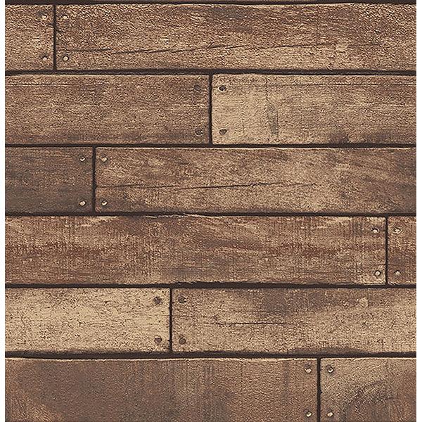 Brewster Weathered Brown Nailhead Plank Wallpaper