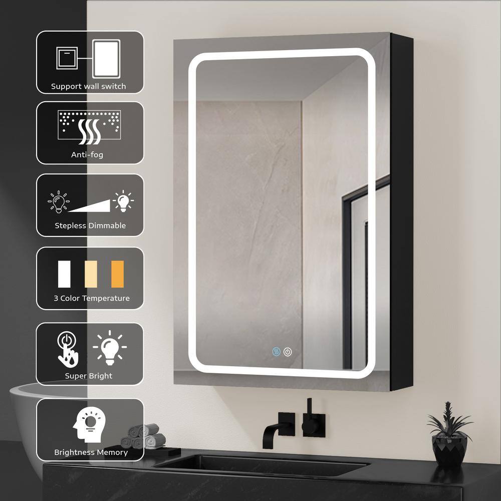20 in. W x 30 in. H Rectangular LED Black Aluminum Recessed/Surface Mount Medicine Cabinet with Mirror