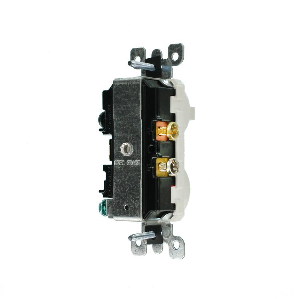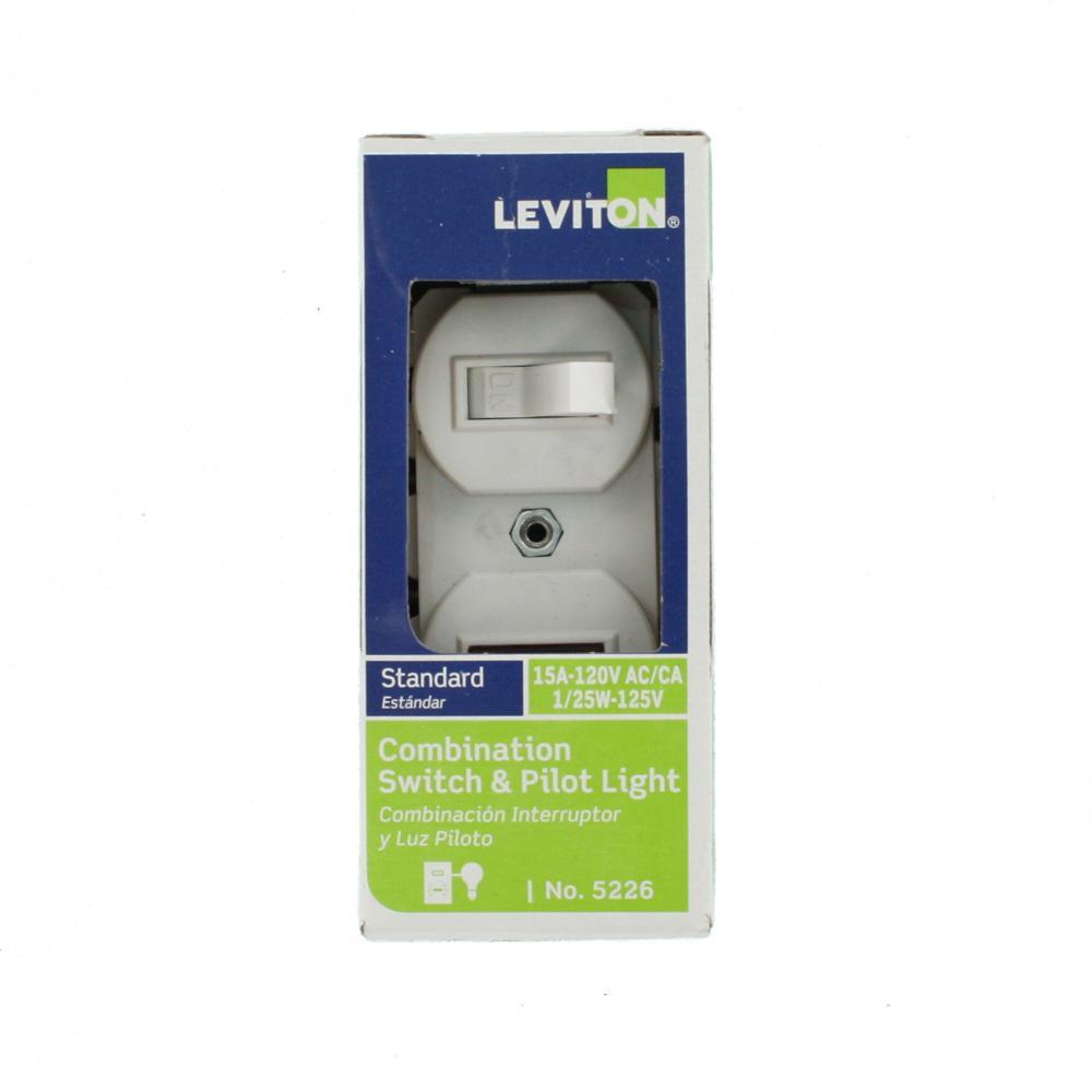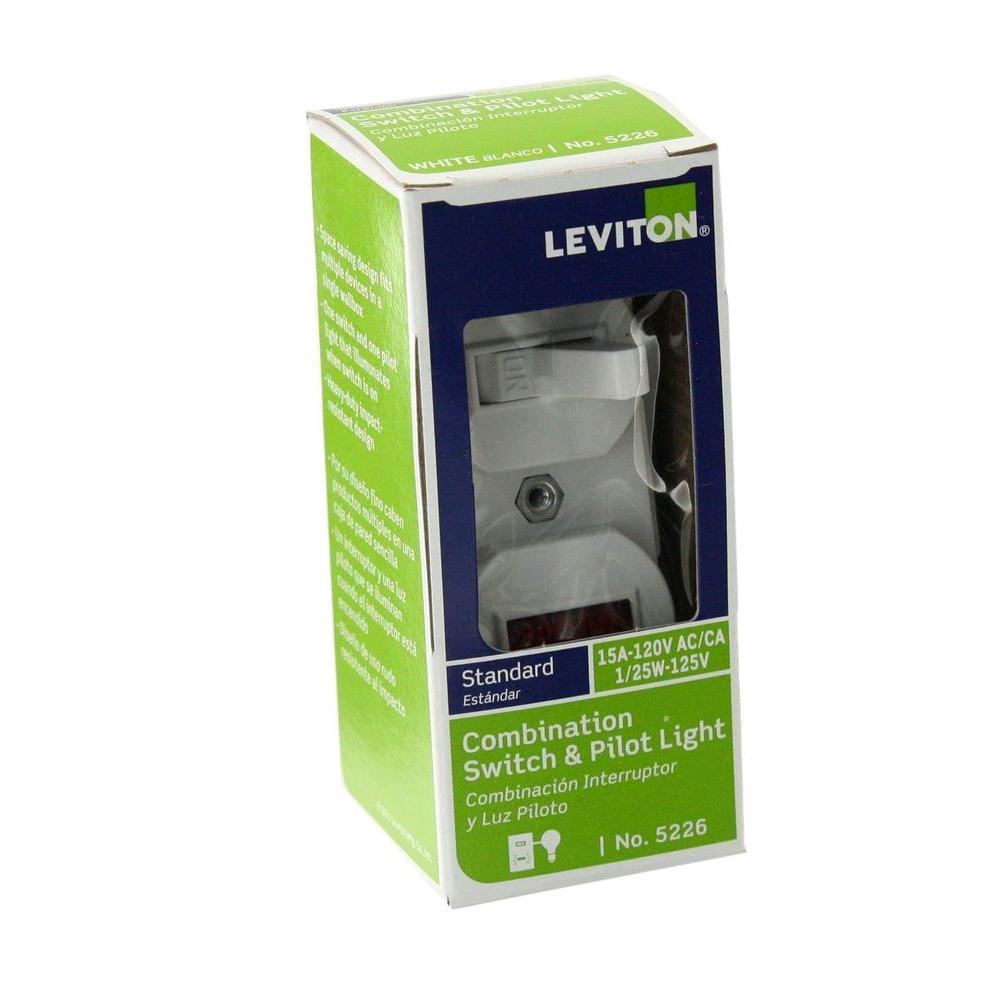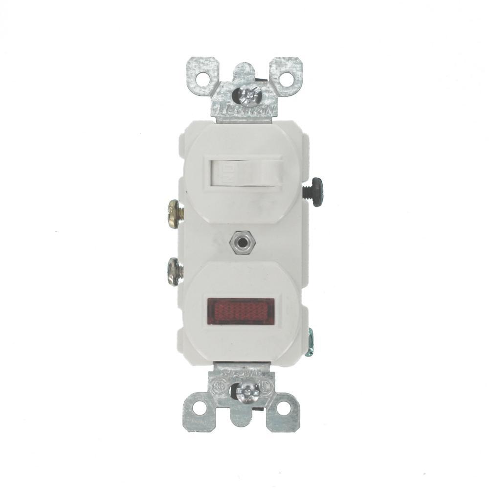This 1/25W-125V Combination Switch with Neon Pilot Light in White by Leviton is equipped with a neon pilot light that lights up when the switch is turned on. It has a space-saving design that allows multiple devices to be accommodated in a single standard wall box, and can efficiently control lights from one location. Please note that a wall plate is not included. UL listed for safety.