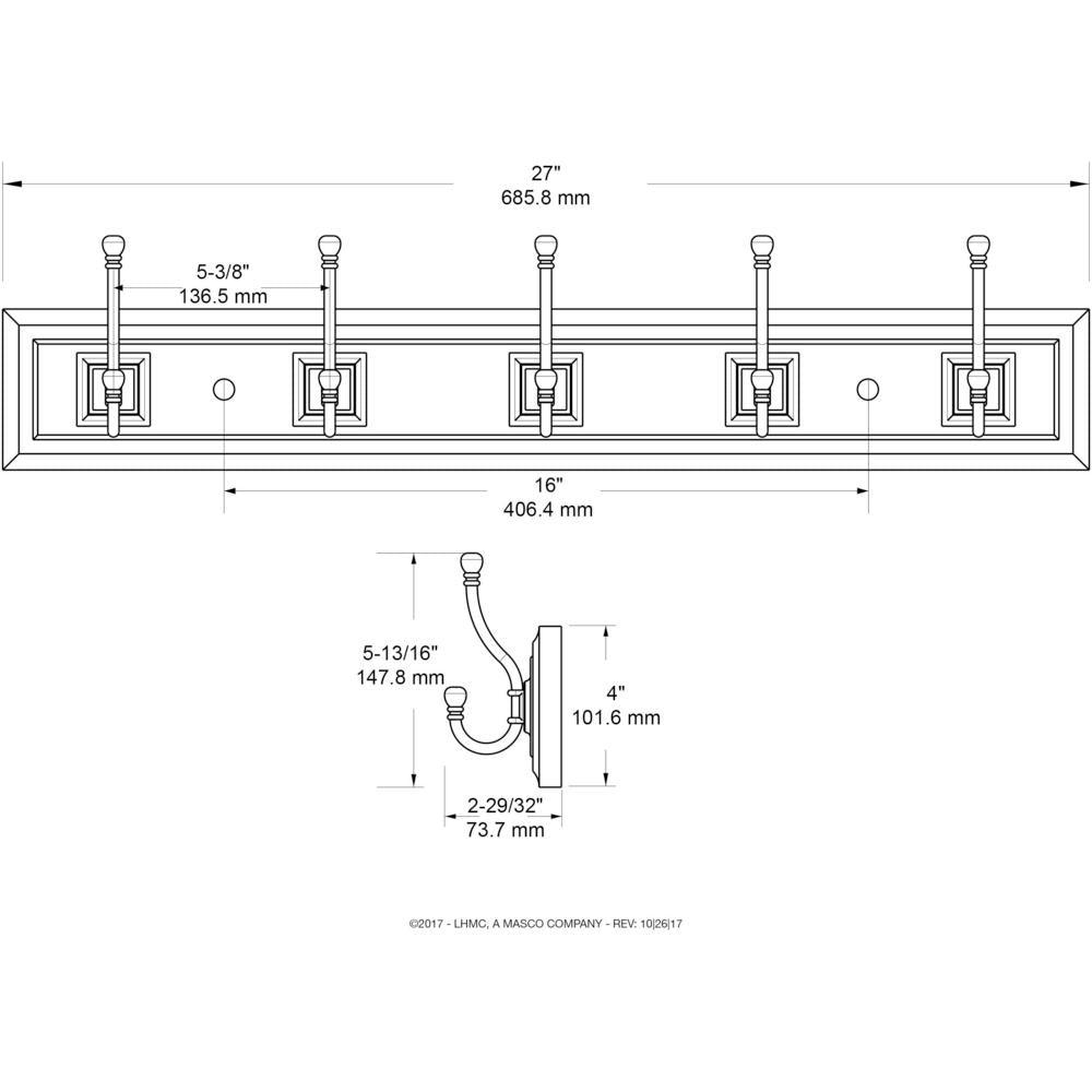 • Constructed of durable die-cast zinc hooks mounted to a high quality medium density fiberboard (MDF) rail
