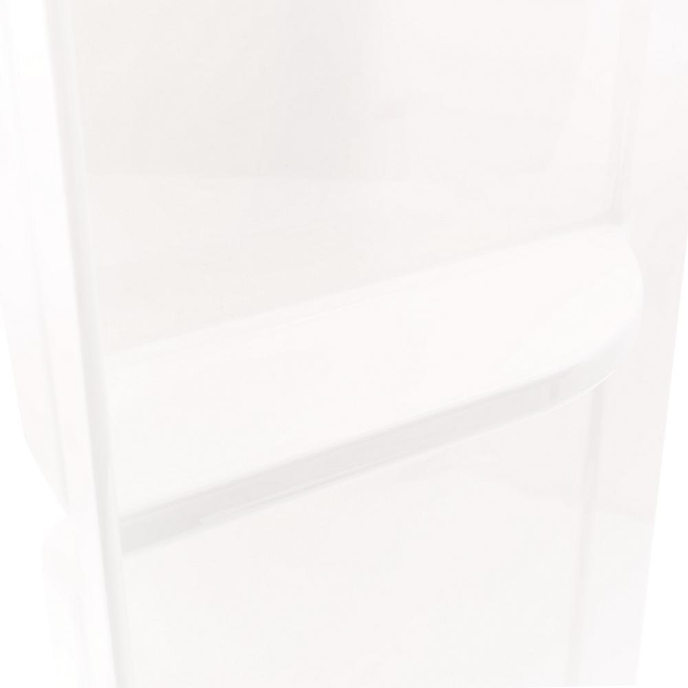 The E L MUSTEE Durawall 40 in. x 60 in. x 71-1/2 in. Five Piece Easy Up Adhesive Shower Wall in White is designed to fit alcoves that are 40 in. deep, 60 in. wide and 72-1/2 in. high. The wall consists of 3 flat panels and 2 formed corned panels. Each corner panel features 3 shelves, allowing for greater storage space. The wall adheres to drywall and similar surfaces and can adjust to out-of-plumb walls.