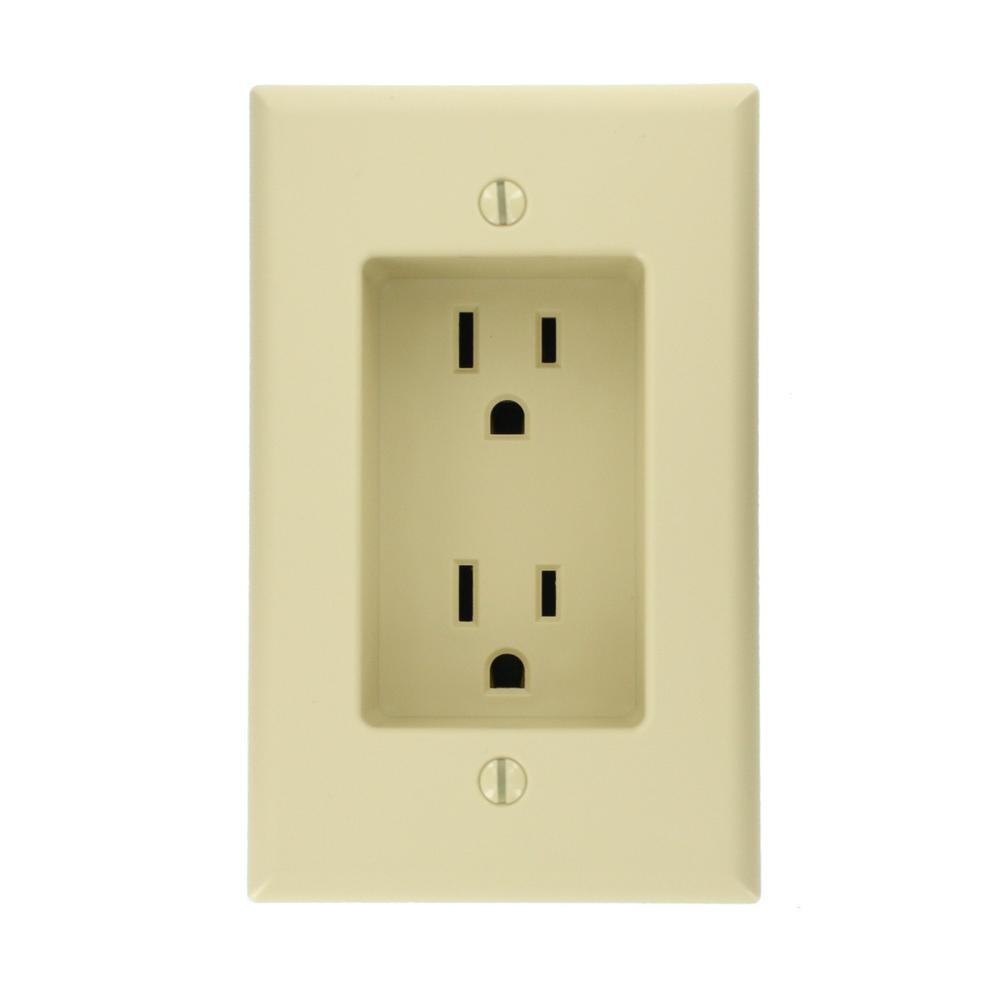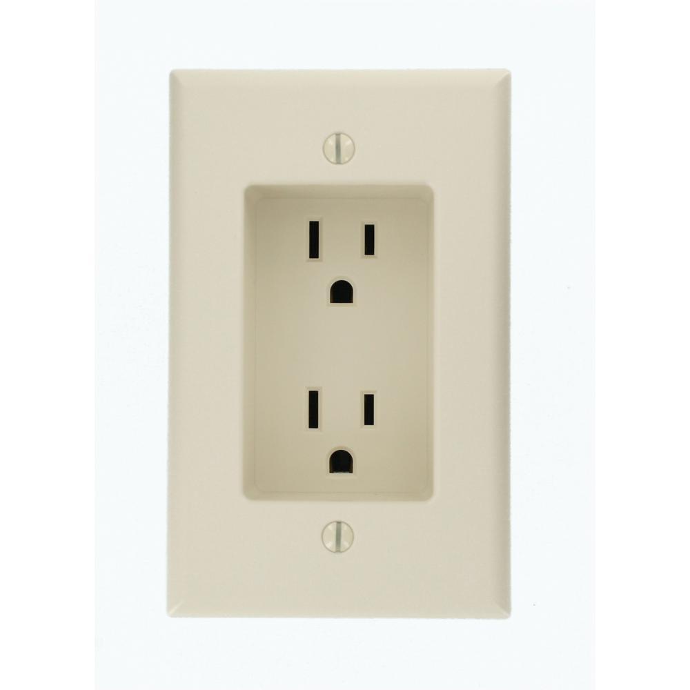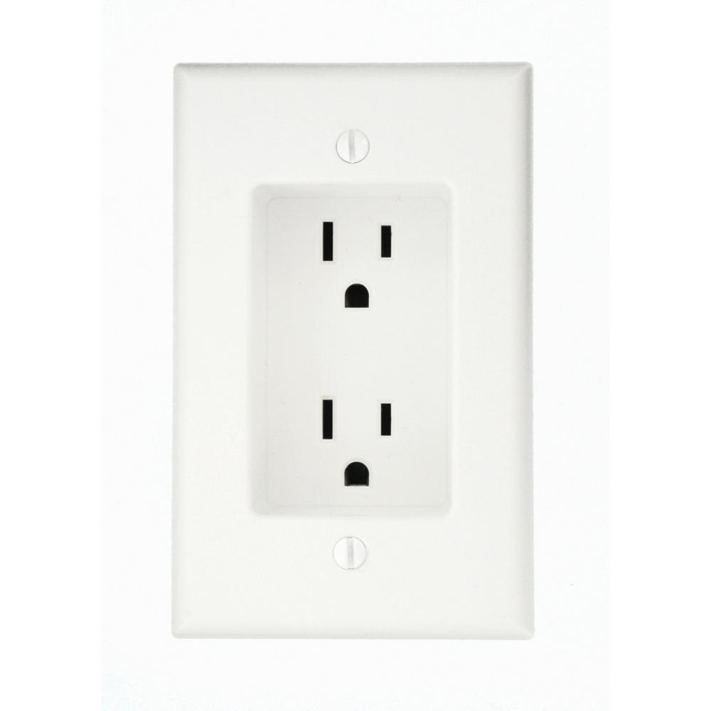 15 Amp 1-Gang Recessed Duplex Power Outlet, White