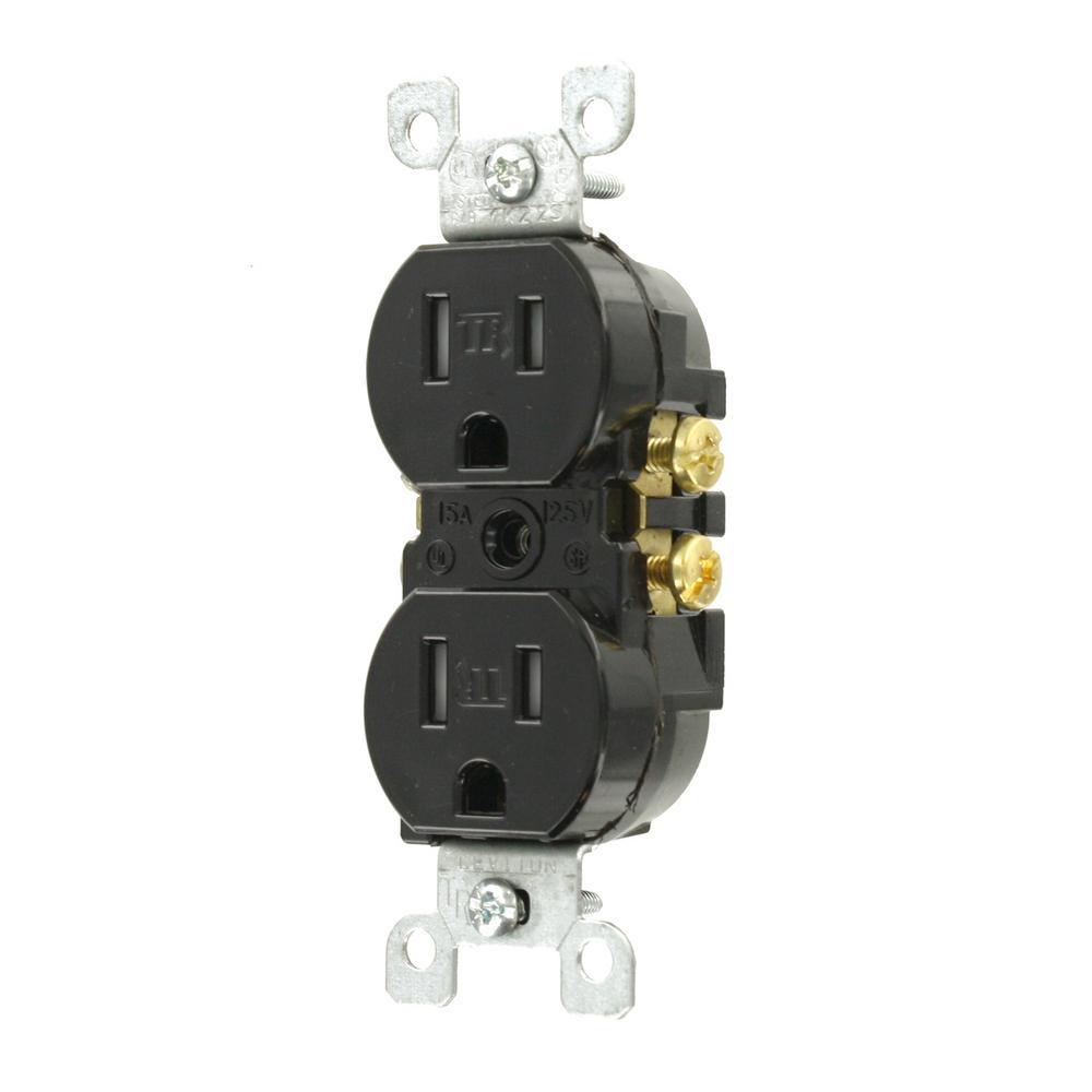 15 Amp Tamper Resistant Duplex Outlet, Black