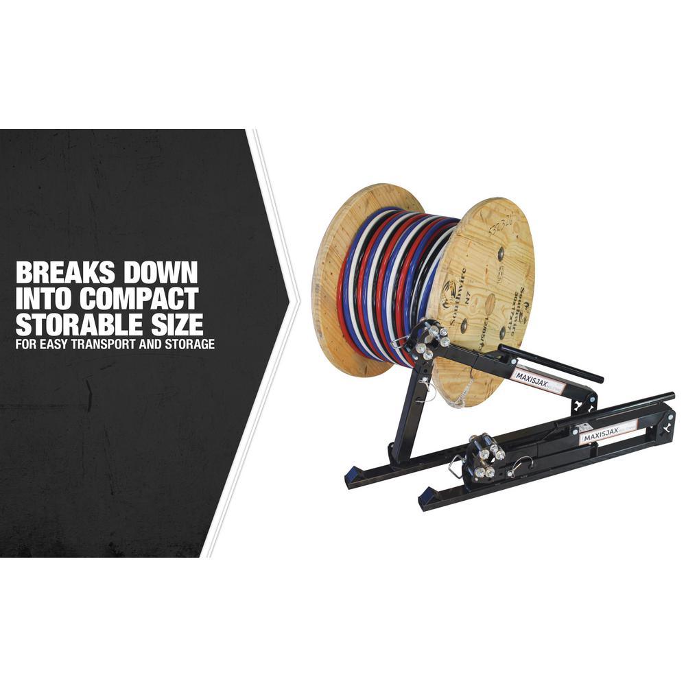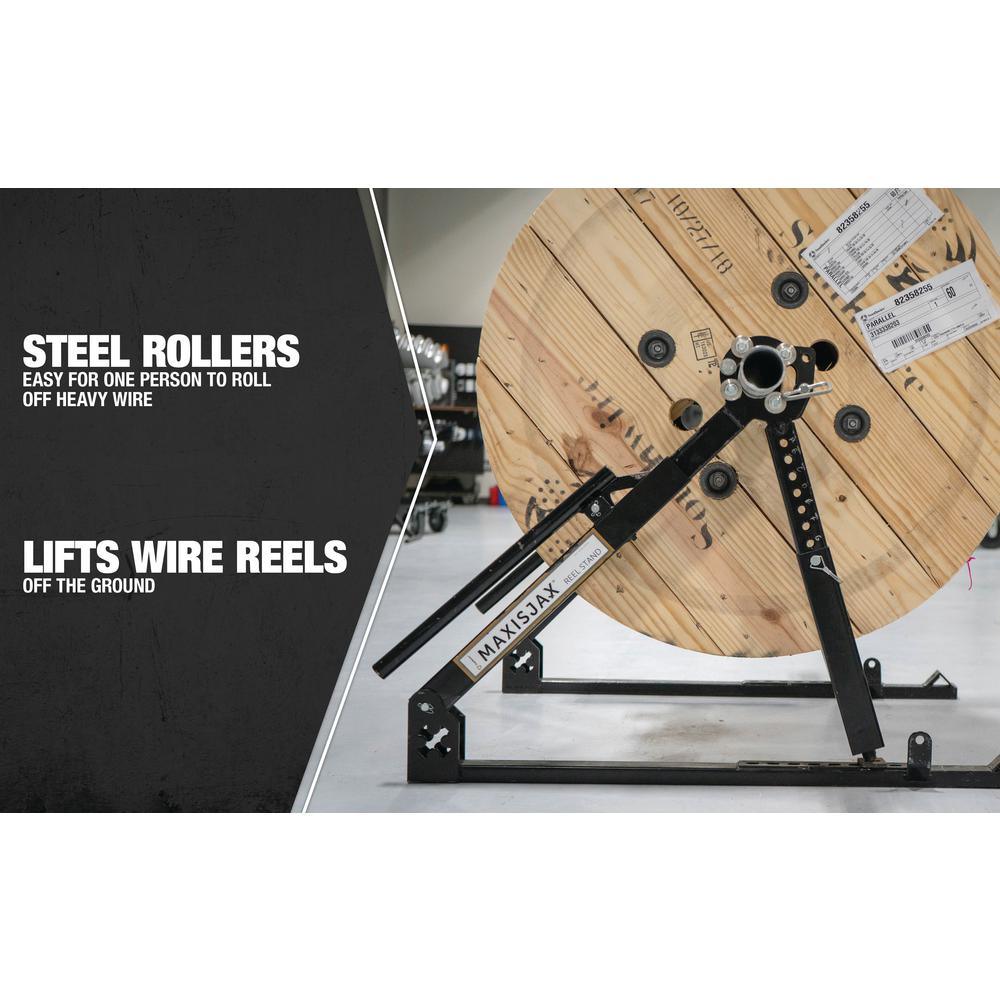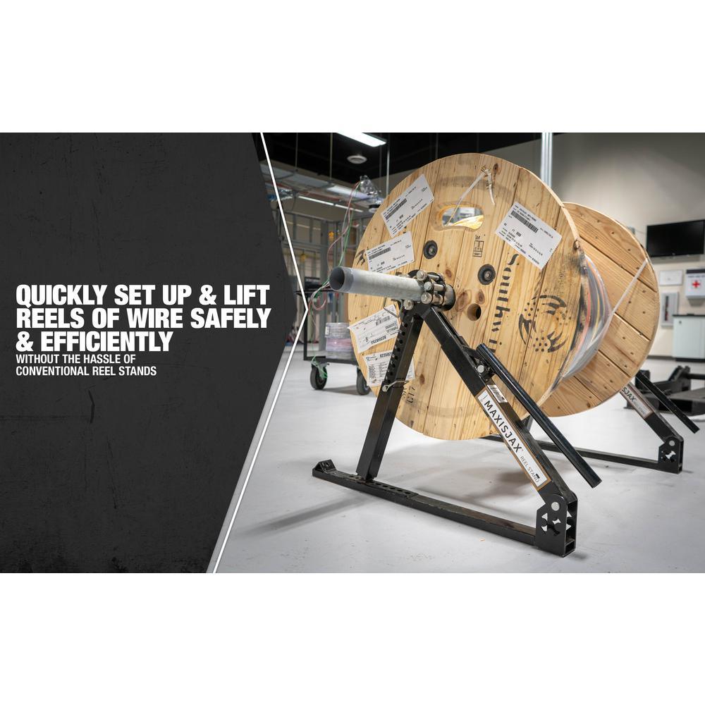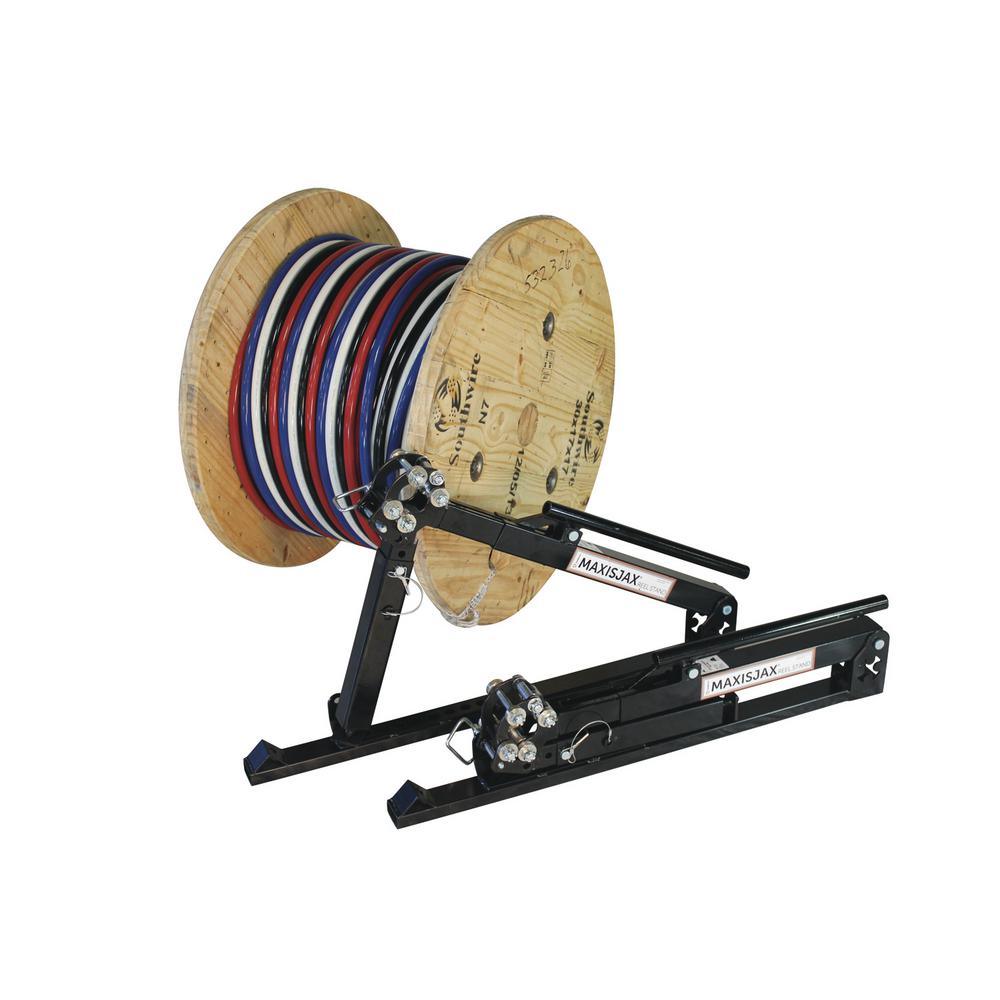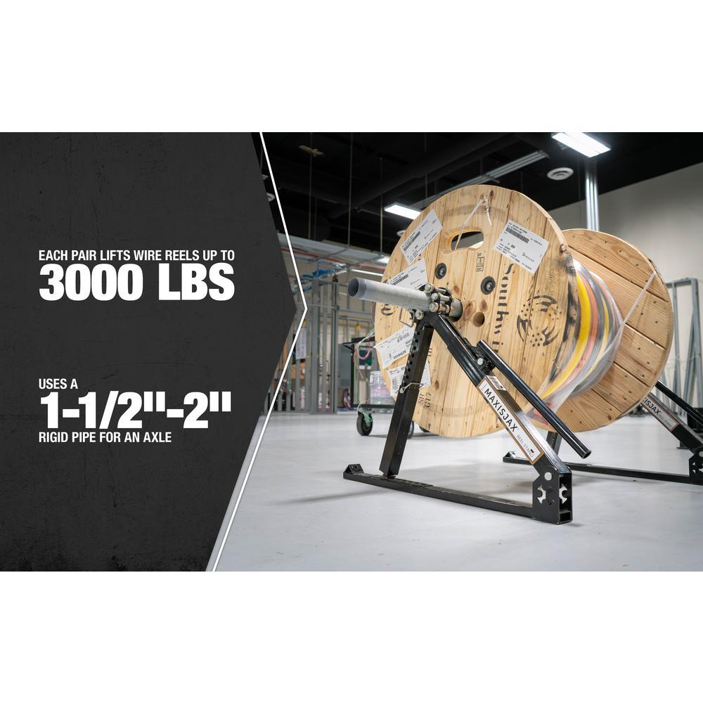 The Maxis MJ-707 Jax Pair of Reel Stands can lift wire reels up to 3,000 lb. off the ground. These reel stands feature encased bearings to make it possible for 1 person to roll off heavy wire.
