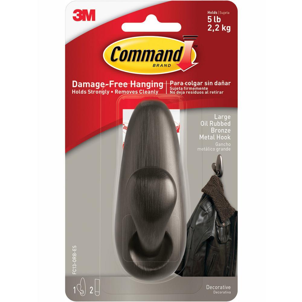 The Command Forever Classic 5 lb. Large Oil-Rubbed Bronze Metal Hook is great for providing damage-free hanging support and is easy to install and remove for hassle-free use over and over again. Easy to remove and comes off clean, leaving no holes, marks, sticky residue or stains for hassle-free taking down or moving. Easy to apply and holds strongly to a variety of surfaces including paint, wood, tile and more.