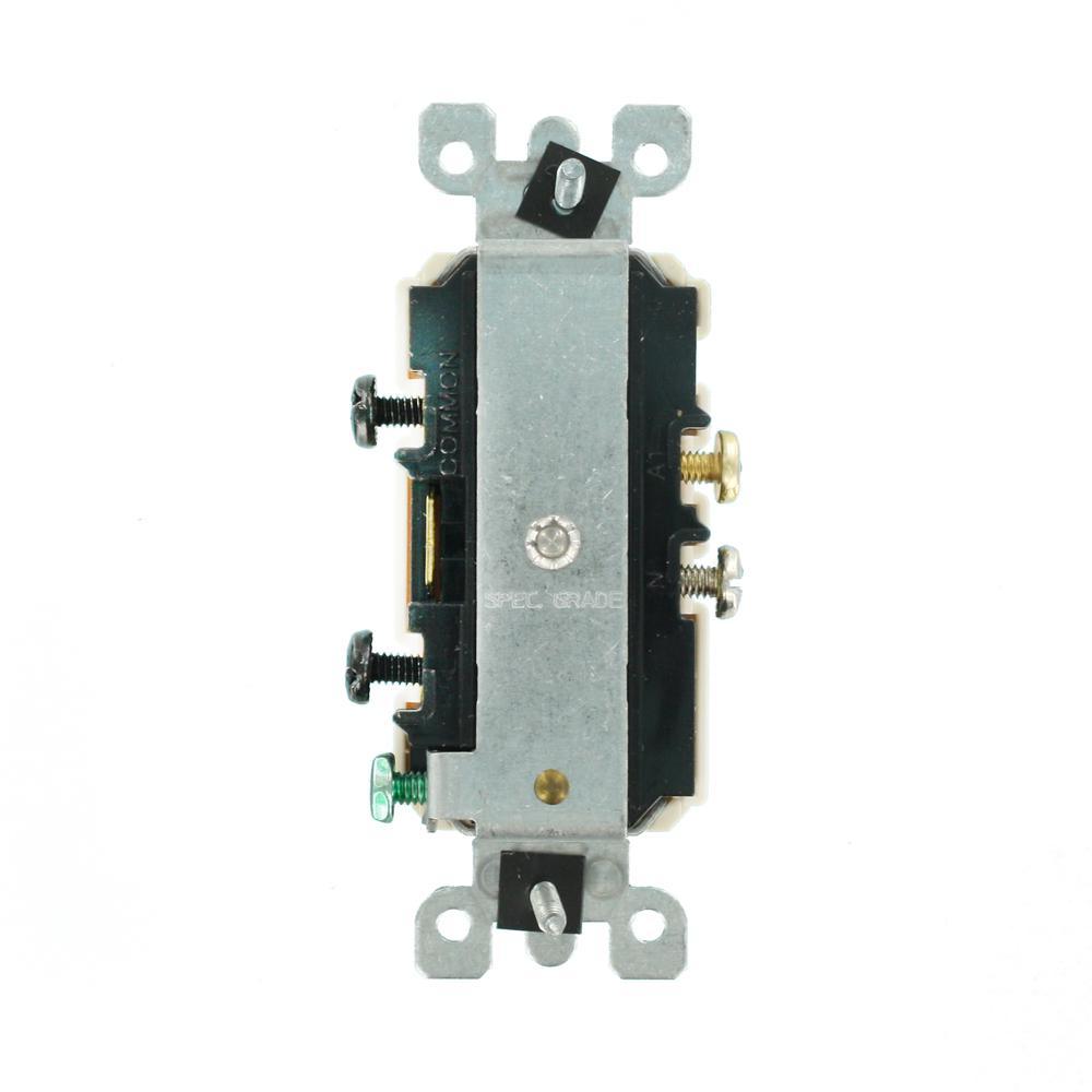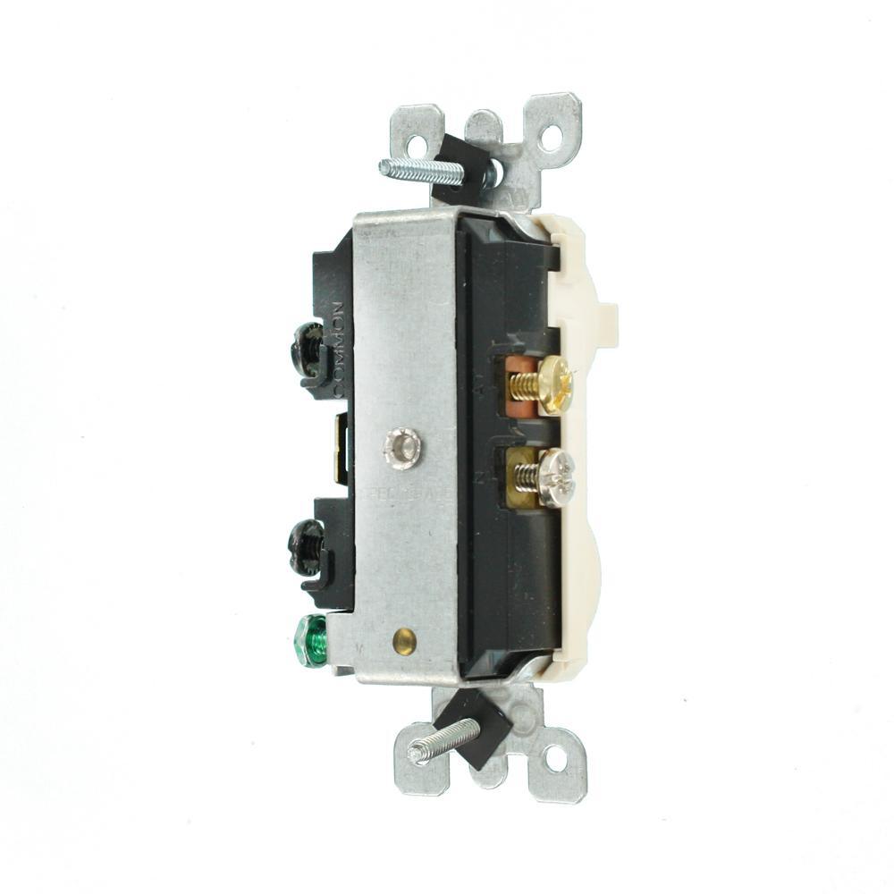 The Leviton T5225, available in a variety of colors, is a durable and convenient duplex style single-pole combination switch. This compact and functional switch is made of thermoplastic material and features a shutter mechanism that prevents access to the contacts without a 2-prong plug inserted. It is suitable for use in commercial, residential, and industrial buildings and complies with the 2008 NEC requirement with a TR symbol on residential receptacles. With Leviton's extensive range of combination devices, finding a solution for your specific needs is easy. Choose the T5225 for a reliable and long-lasting option that also protects children from electrical shock injuries.