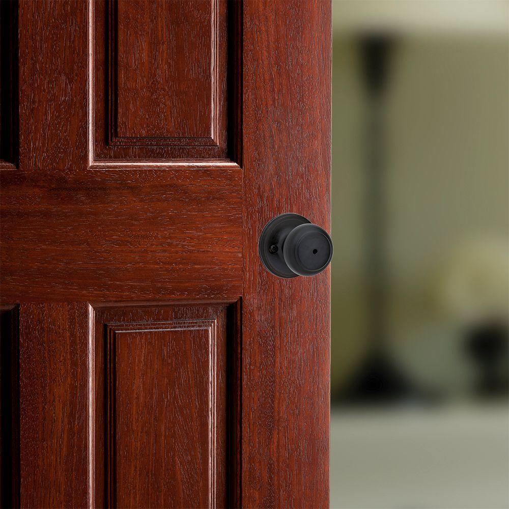 As the industry leader, Kwikset has provided trusted security for over 60 years and has become synonymous with security, peace of mind, style and innovation. The attractive, traditional colonial design of the Cove makes a simple yet elegant statement in any home. The Venetian Bronze finish is hand-rubbed to reveal unique bronze highlights and provides a rich and warm complement to the product's style. This privacy knob is best used in interior bed and bath applications where privacy is required. The knob is locked or unlocked by turn button inside. The outside knob can be unlocked by an emergency key.