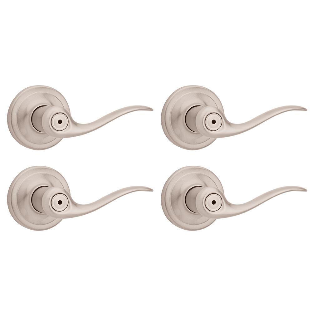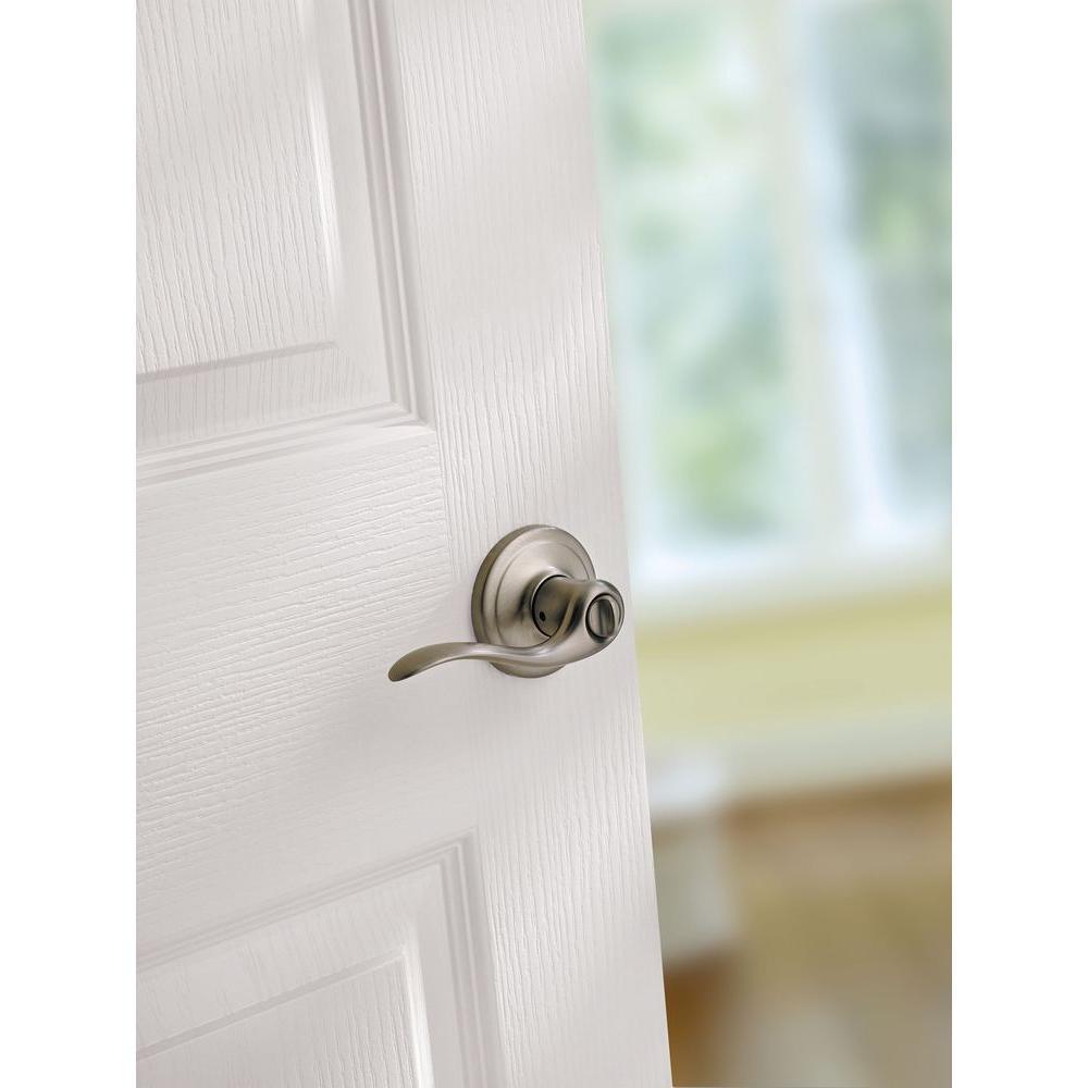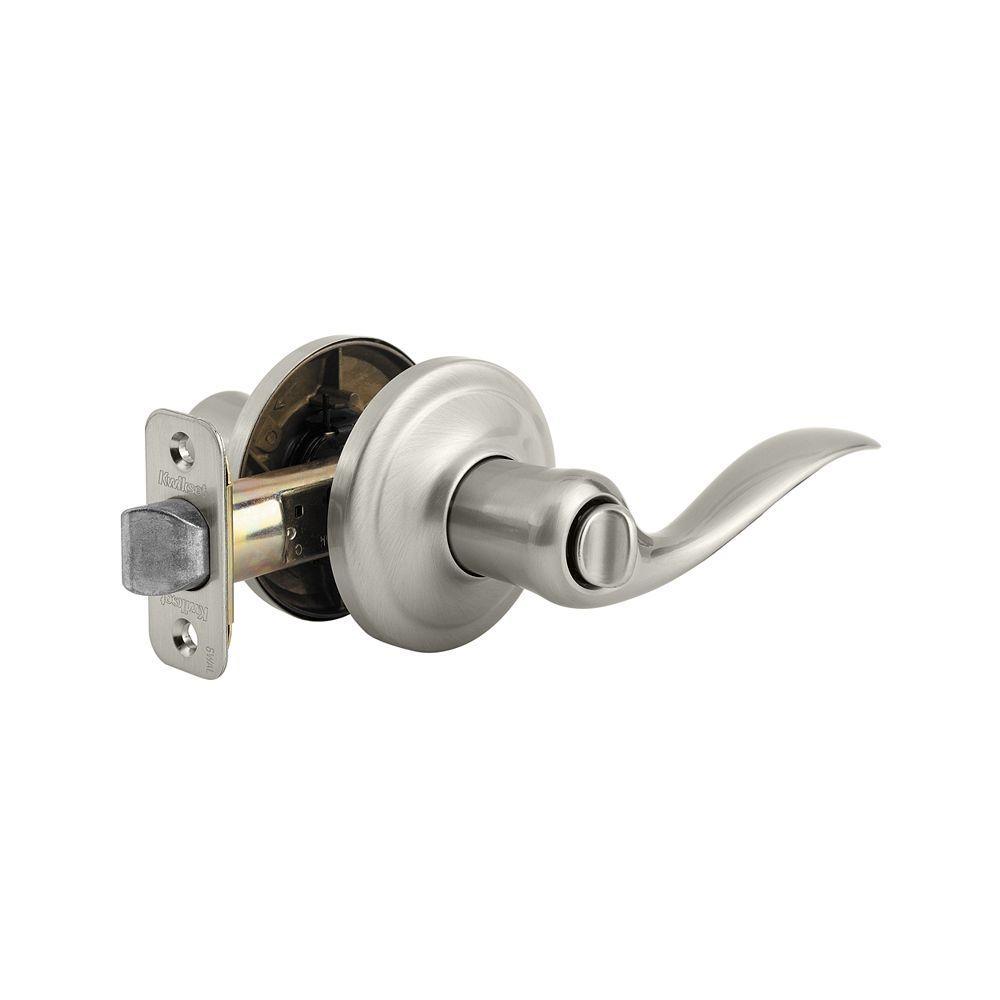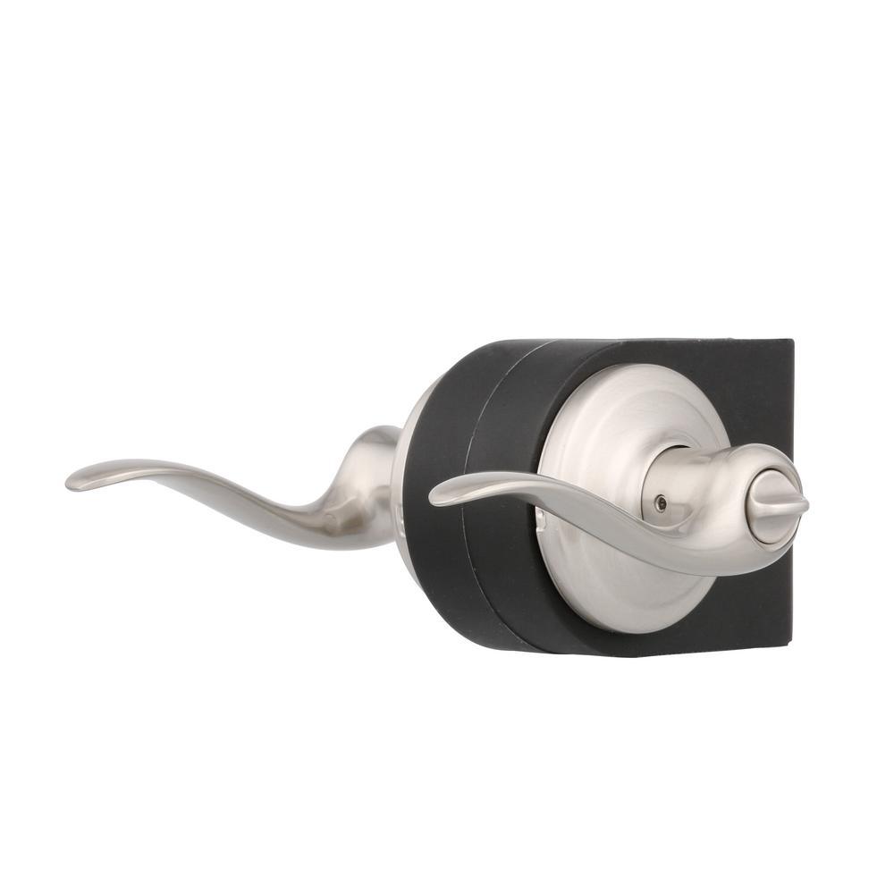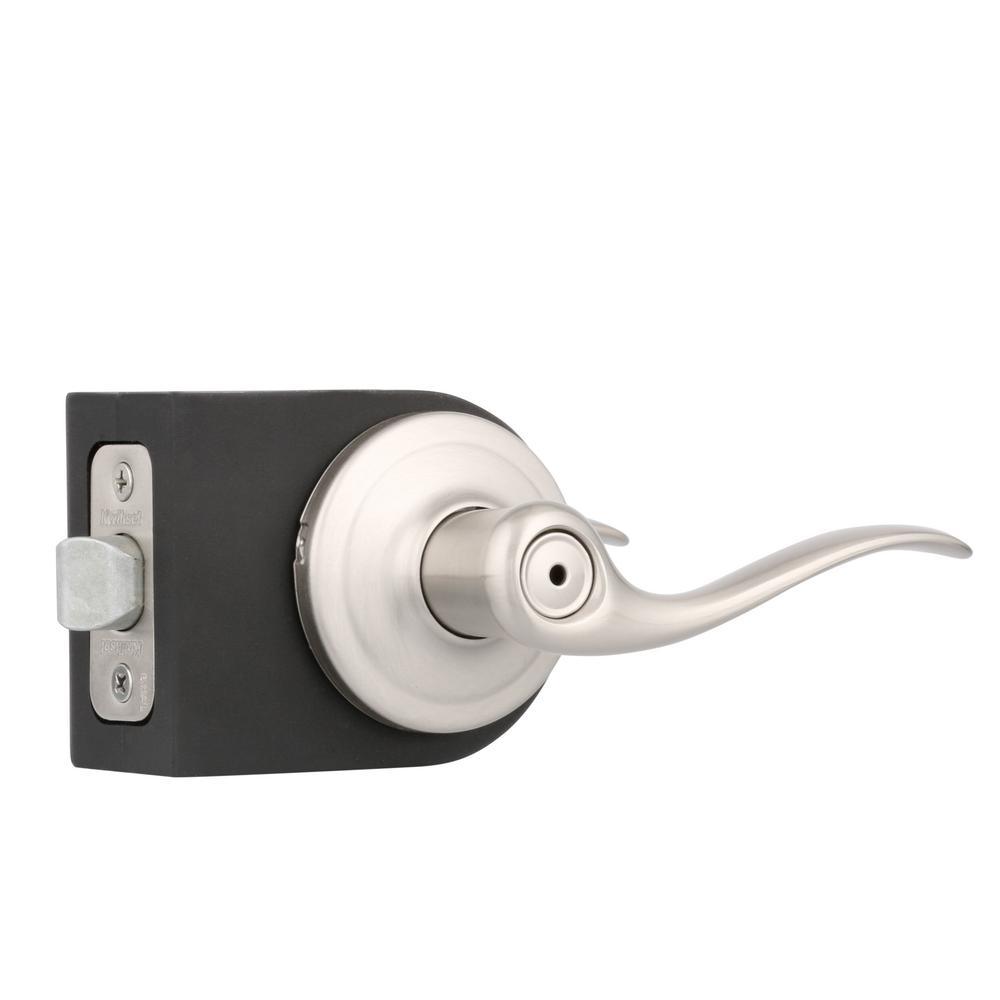 Step up to designer styles and superior security with Kwikset signature series products. Tustin's fashionable wave silhouette design is the perfect complement to homes with inspired style. The crisp, clean appearance of the Satin Nickel finish adds to the overall look of the product and brings a modern feel. This privacy lever is best used in interior bed and bath applications where privacy is required. The lever is locked or unlocked by turn button inside. The outside lever can be unlocked by an emergency key.