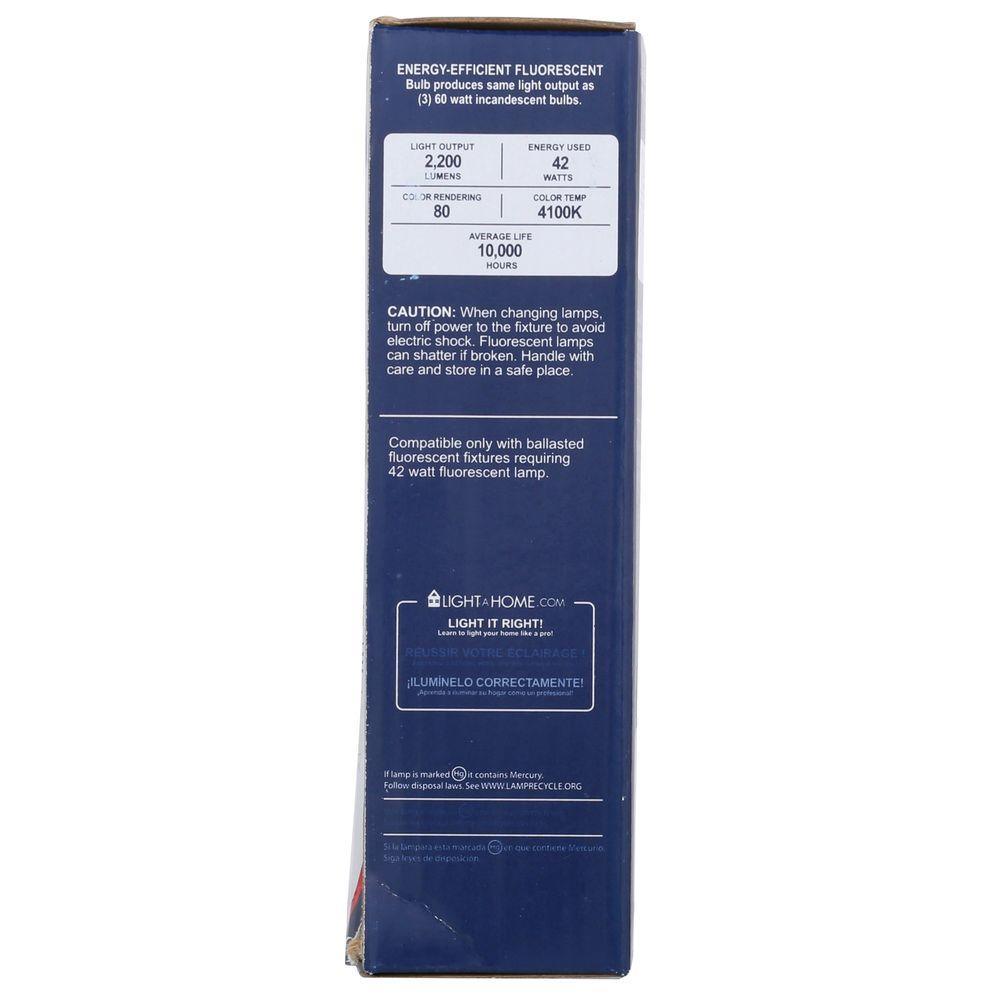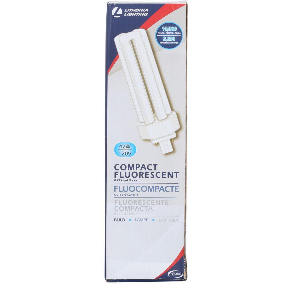 The Lithonia Lighting 42-Watt Compact Fluorescent Triple Tube Light Bulb can last up to 10 times longer than incandescent bulbs. It features a triple tube design and a 4-pin base. Provides light equal to two 75-Watt bulbs.