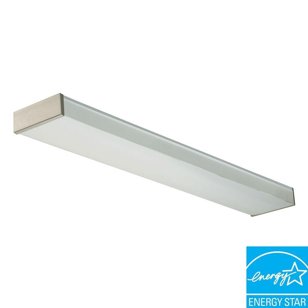The Lithonia Lighting Flush Mount Ceiling Fluorescent Brushed Nickel End Wrap Light provides general illumination in residential and light commercial applications. Designed around energy-efficient T8 fluorescent technology, this fixture was built for savings and performance. Light output is approximately equal to seven 50-Watt incandescent bulbs.