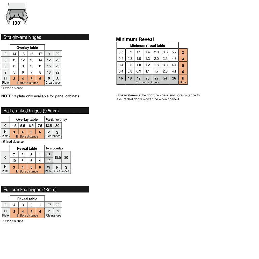 Hinge Opening (Degrees) 100