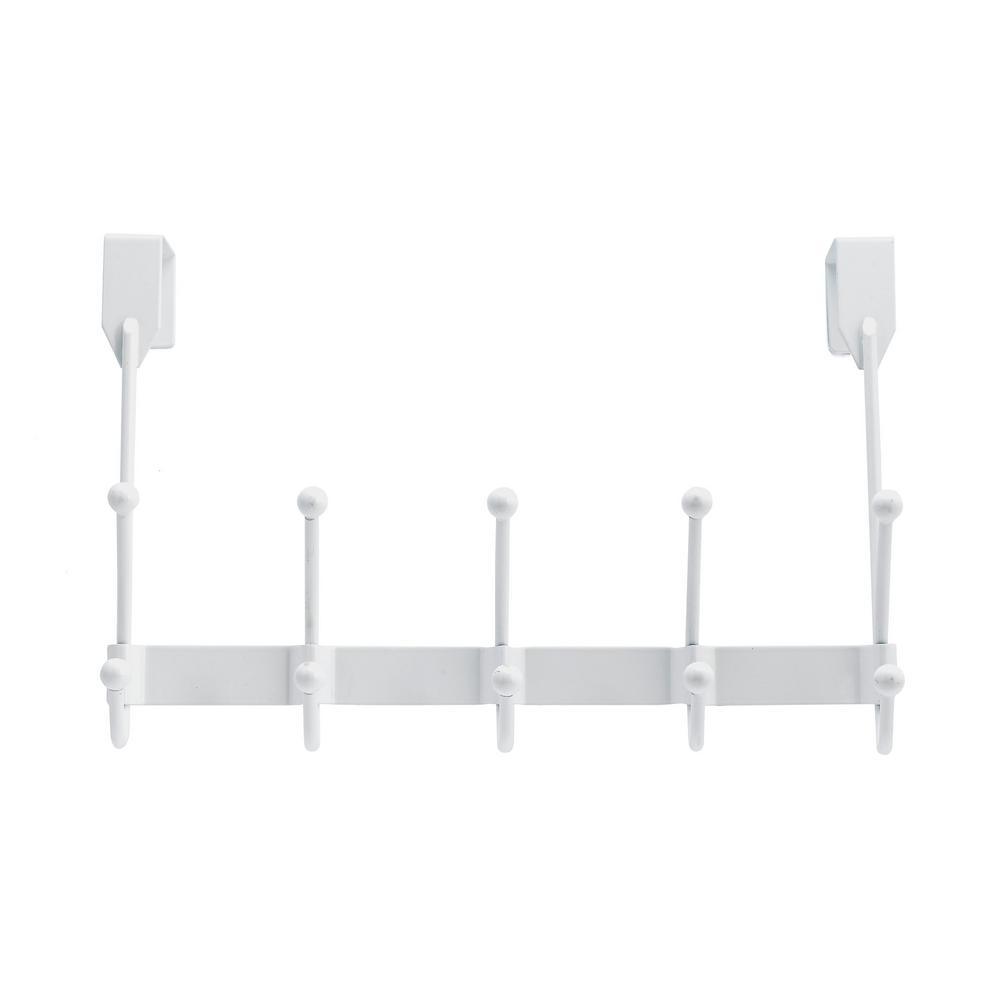 14 in. Over Door Fancy White 5 Hook Bar