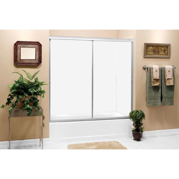 Model 500 59 in. x 57 in. Framed Sliding Tub Door in Satin Clear with Clear Glass and Color-Matched Handle