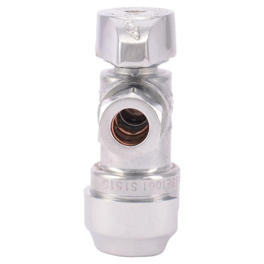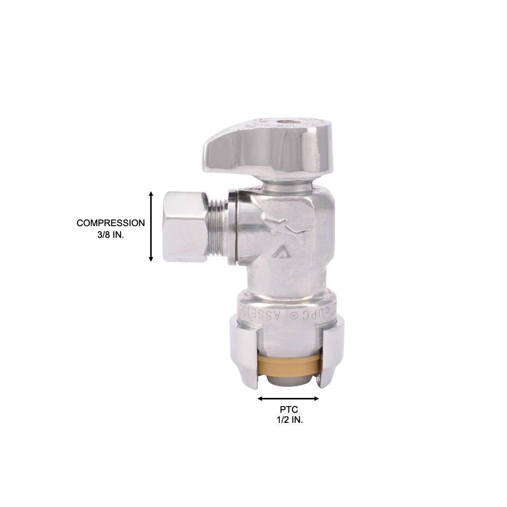 1/2 in. Push-to-Connect x 3/8 in. O.D. Compression Chrome-Plated Brass Quarter-Turn Angle Stop Valve