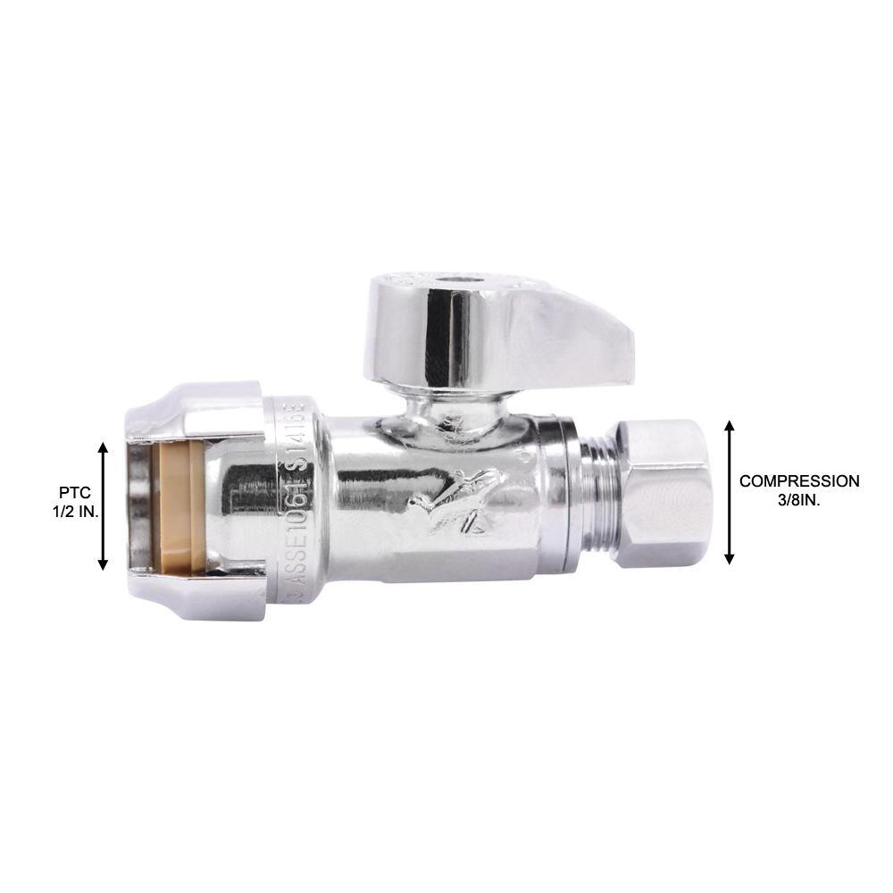 1/2 in. Push-to-Connect x 3/8 in. O.D. Compression Chrome-Plated Brass Quarter-Turn Straight Stop Valve