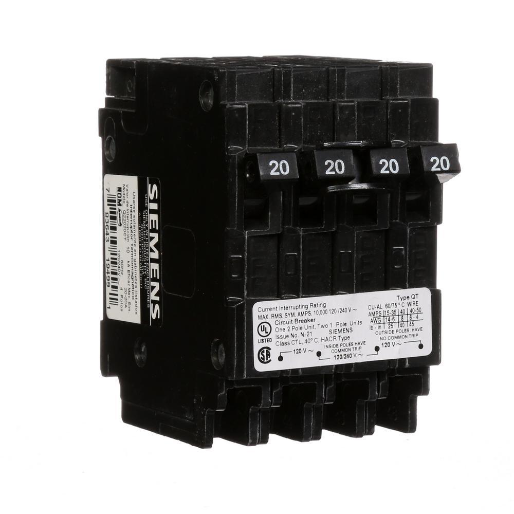 • Triplex design offers 2 single-pole 20 Amp circuit breakers and a double-pole 20 Amp circuit breaker