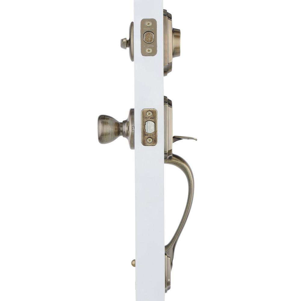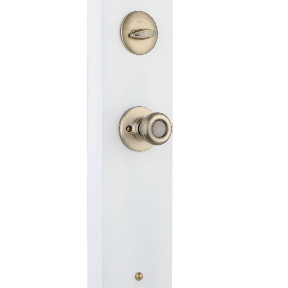 As the industry leader, Kwikset has provided trusted security for over 60 years and has become synonymous with security, peace of mind, style and innovation. The beveled design of the Belleview adds elegance to its traditional arched shape The classic design of Tylo is at home in any decor. Its style lends a graceful finish to any door. The complementary Antique Brass finish offers a warm feel with deep accents in the contours of the product. The single cylinder handle set can be locked or unlocked by a key on the outside, or the turn button on the inside. SmartKey Security Re-key Technology allows you to control who has access to your home. Re-key the lock yourself in seconds in 3 easy steps. Have you recently moved or had a child lose a key. It's time to re-key. SmartKey Security provides the highest level of residential security and features BumpGuard to protect against lock bumping.