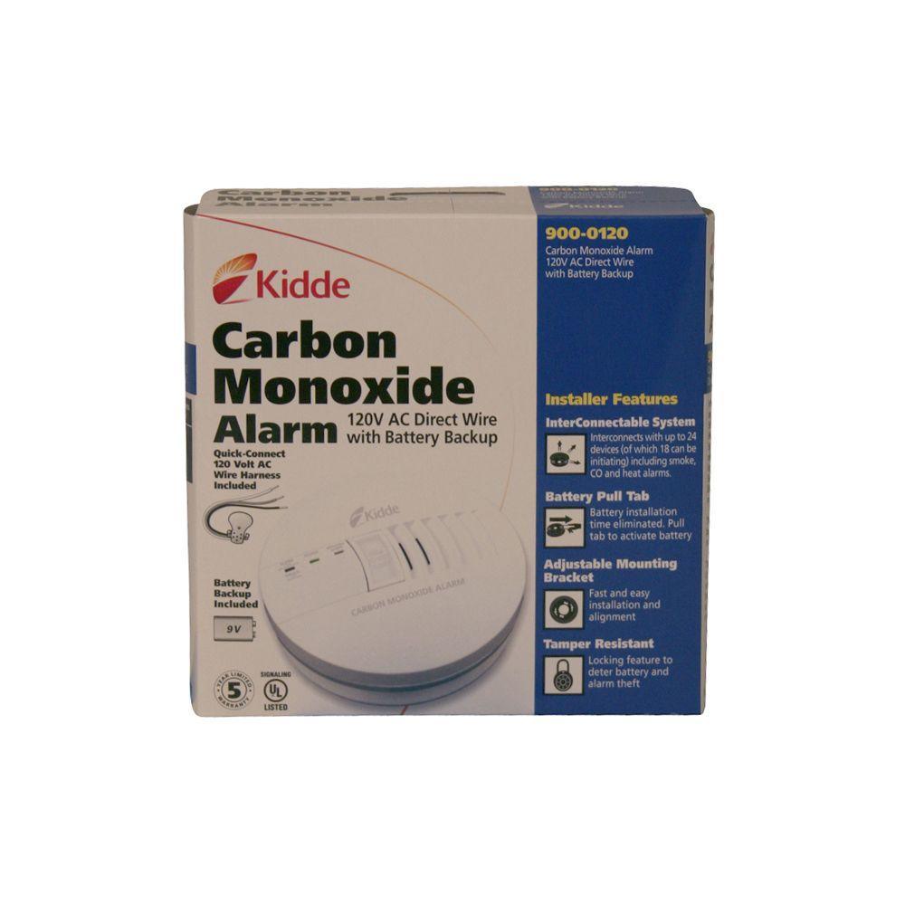 The Kidde FireX ACDC 120-Volt Carbon monoxide alarm detects carbon monoxide. This hardwired 120-Volt Inter Connectable Carbon Monoxide Alarm with 9-Volt Backup can be interconnected with up to 24 Kidde devices, 18 of which can be initiation style (additional devices not included). The alarm has a fuel-cell design with a low-battery warning that issues a brief alarm chirp and a red LED light that will flash approximately every 15-seconds.