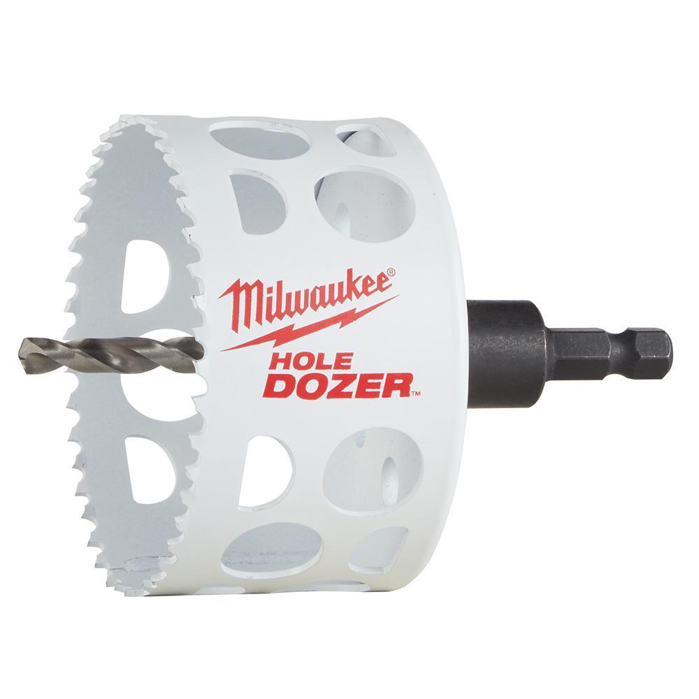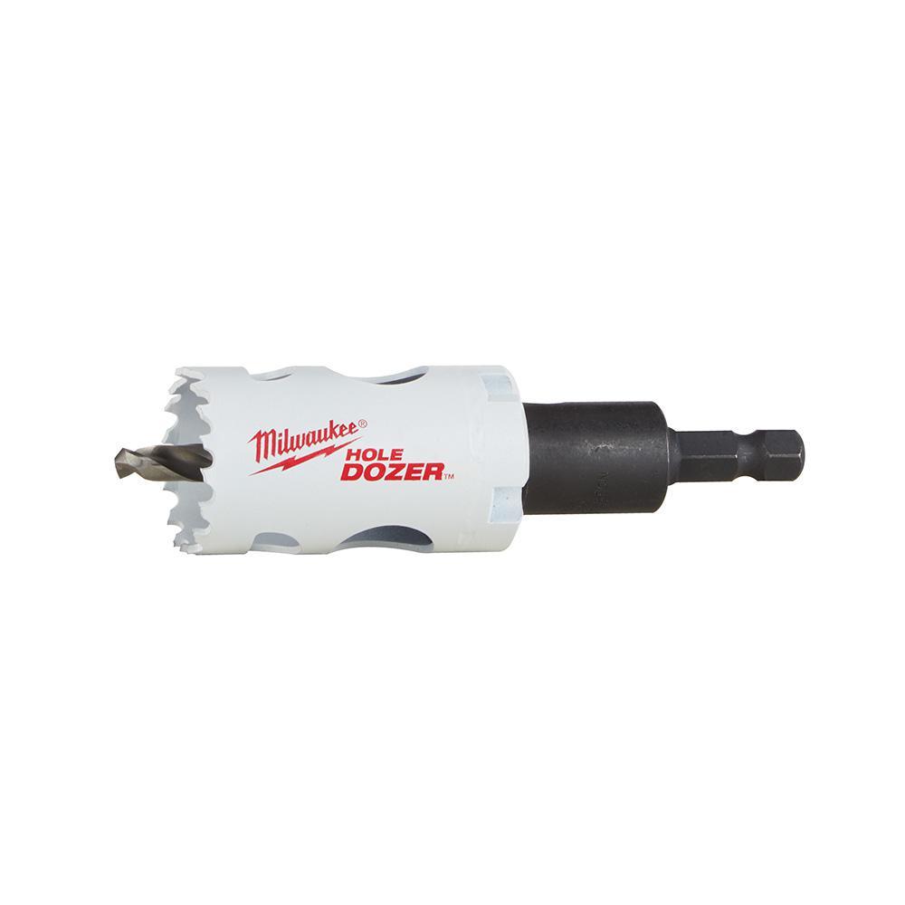 The Milwaukee Hole Dozer Hole Saw features Rip guard, the strongest tooth form in the industry, backed by the Rip guard limited lifetime tooth break warranty. Each tooth is built with more steel behind the cutting edge for added strength. The Rip Guard warranty on tooth breaks is a first for the hole saw industry. The added tooth strength along with 8% cobalt give added life to the teeth, allowing for increased productivity on the jobsite, as well as continued hole quality. The Hole Dozer includes Plug Jack, an all access slot design that allows for full access during plug removal. The Plug Jack gives access lower into the cup for thick material and higher towards the teeth for thin material. With multiple positions to apply leverage and better plug access, Plug Jack increases productivity and eliminates wasted downtime between holes. For fast, tool-free change-outs, use Milwaukee's universal Quick-Change Arbors. 49-56-7210, 49-56-7240, 49-56-7250 and 49-56-9100.