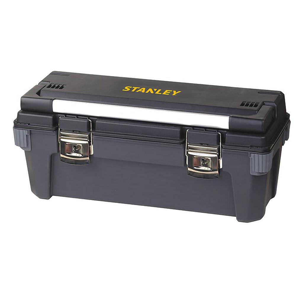 • Large, heavy-duty nickel-plated metal latches with padlock eyes to fasten the tool box