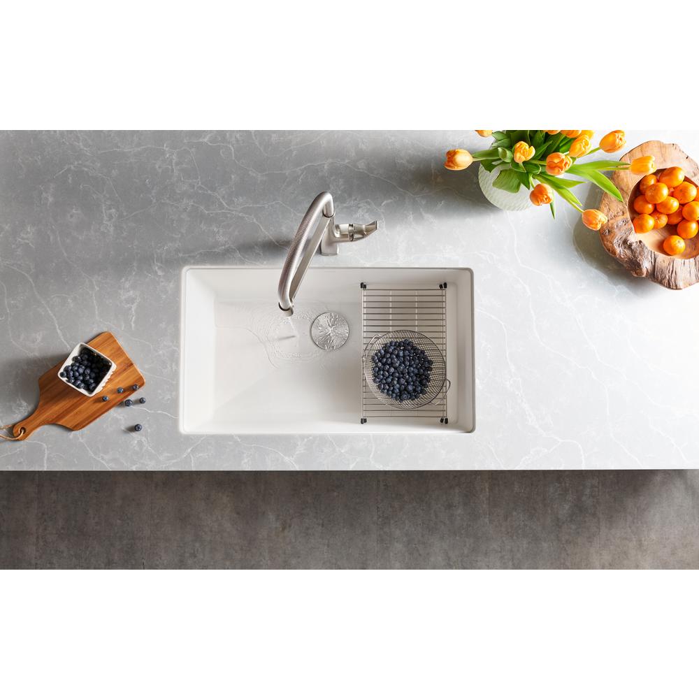 - Sink dimensions: 32 in. L x 19 in. W x 9.5 in. D and designed to fit 36 in. minimum cabinet base