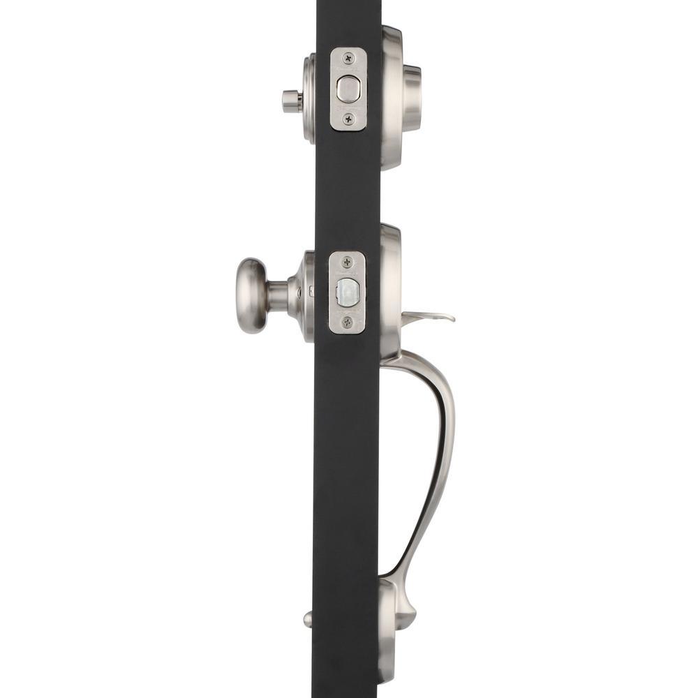 Step up to designer styles and superior security with Kwikset signature series products. The oval design of the Chelsea beautifully outfits any colonial or traditional entryway. Juno's elegant, traditional style blends perfectly with most design styles. The crisp, clean appearance of the Satin Nickel finish adds to the overall look of the product and brings a modern feel. The single cylinder handle set can be locked or unlocked by a key on the outside, or the turn button on the inside. SmartKey Security Re-key Technology allows you to control who has access to your home. Re-key the lock yourself in seconds in 3 easy steps. Have you recently moved or had a child lose a key. It's time to re-key. SmartKey Security provides the highest level of residential security and features BumpGuard to protect against lock bumping.