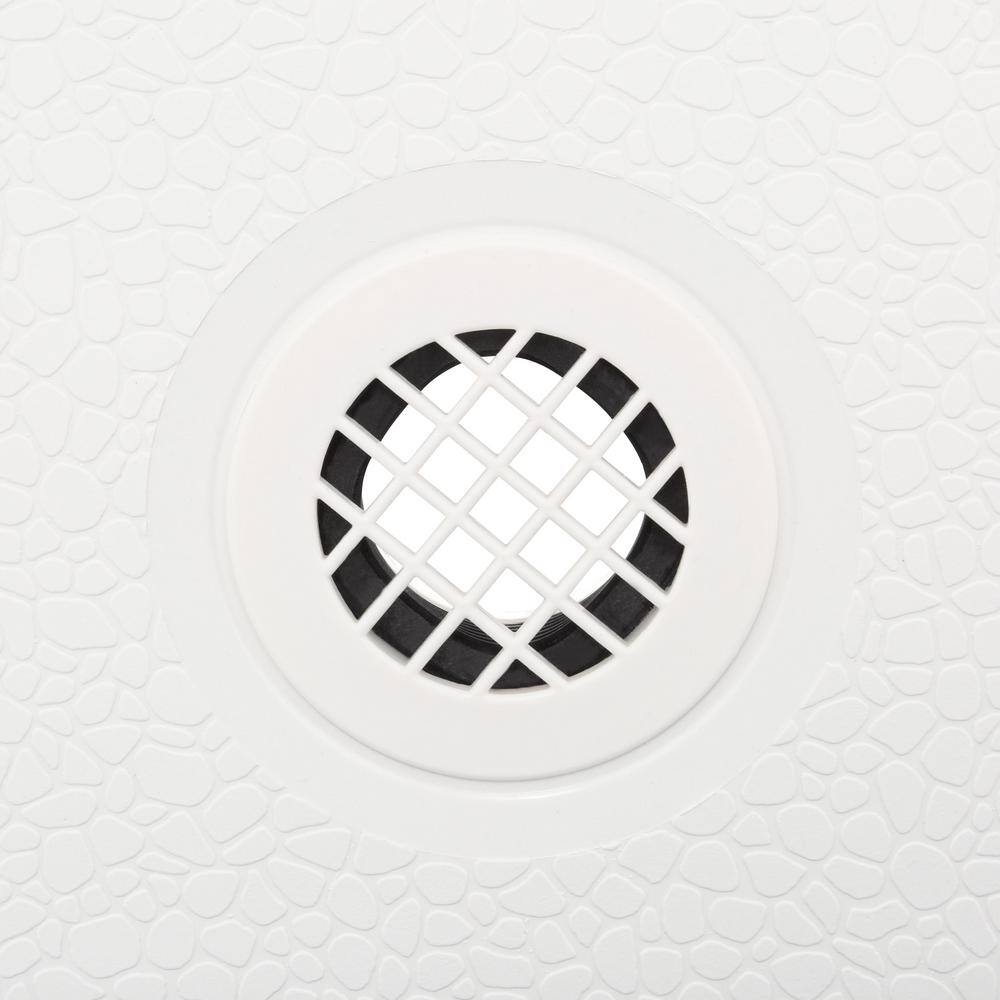 This Solid Surface Single Threshold Shower Floor from Swanstone measures 34 in. x 54 in. and boasts a nonporous finish for effortless cleaning without chipping or cracking. It is designed for durability with molded-in structural support and a pebbled texture for slip resistance and safety. Paired with Swanstone's shower systems and vanity tops, it features a matching drain cover, a no fade neutral white color, and is made from compression-molded solid surface material for superior heat, stain, and crack resistance. Its mold and mildew-resistant surface also includes a Fit-Flo integral drain for easy and compatible installation with standard plumbing sizes.