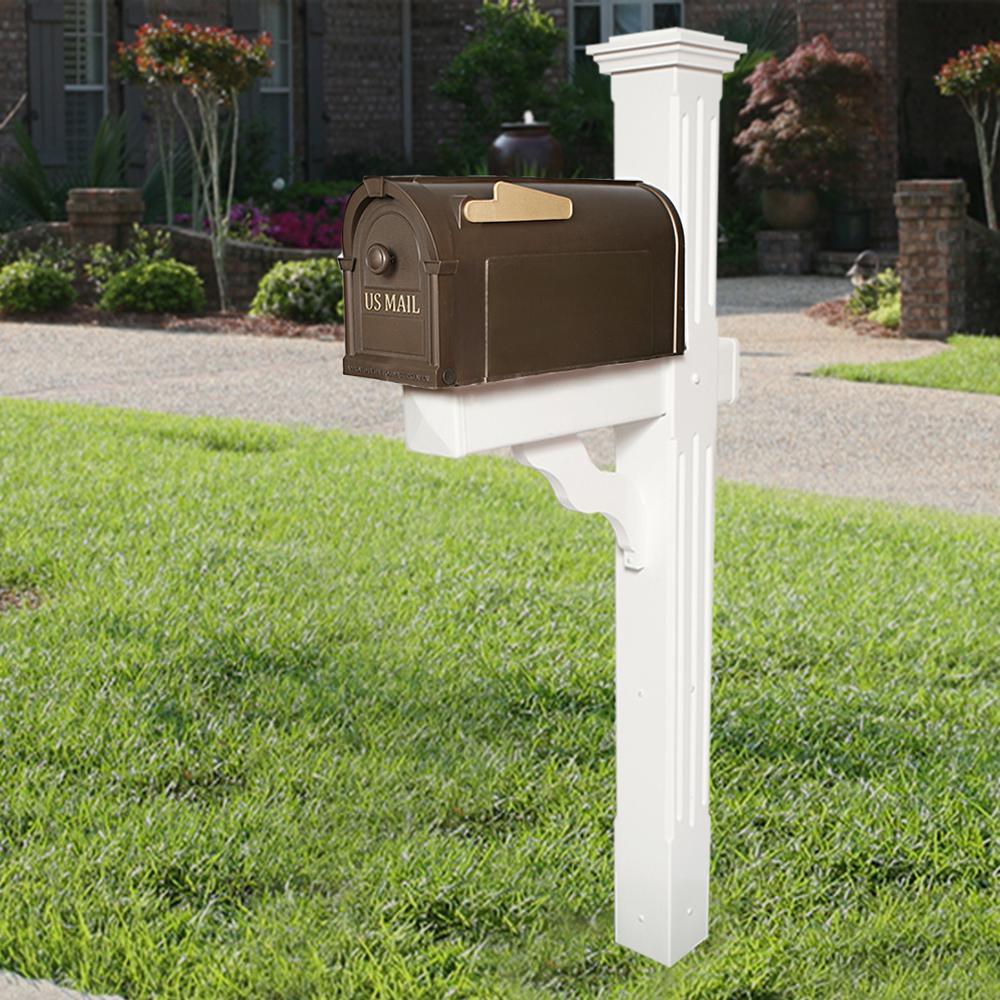 Postal Pro Post-Mount Hampton Mailbox in Bronze with Gold Lettering