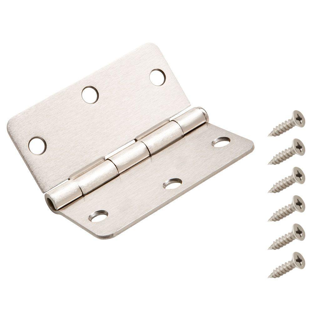 3 in. x 1/4 in. Satin Nickel Radius Door Hinge